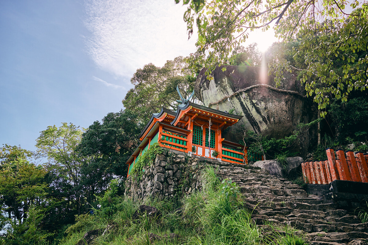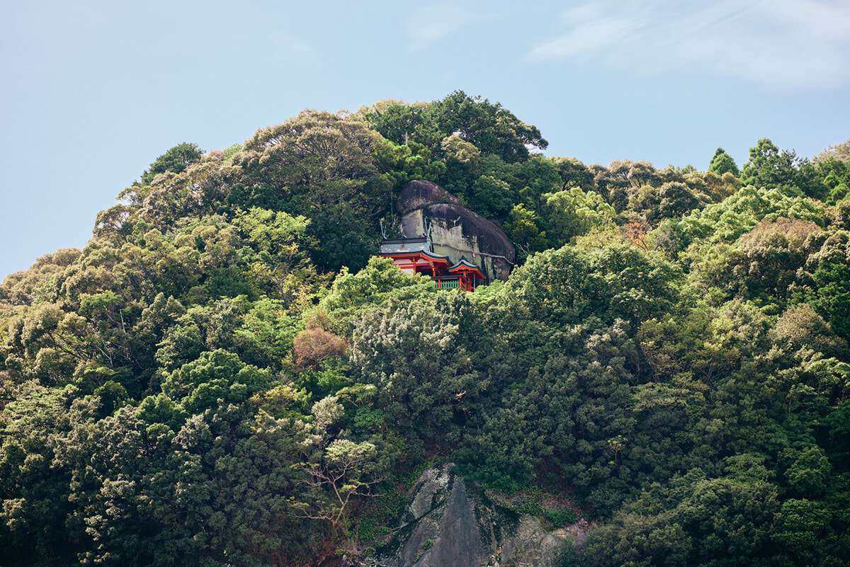 神殿の横に鎮座する御神体の「ゴトビキ岩」はすごい迫力。熊野の神様たちが最初に降臨したという伝説が残る地なだけあって、さすがです。
