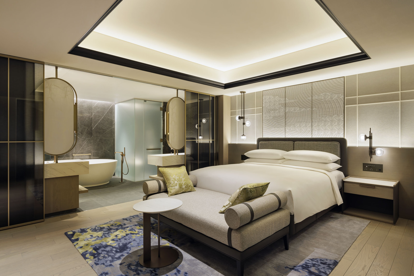 客室数は全207、その7割にバルコニーが設けられました。客室をより贅沢に選び、エグゼクティブルームやスイートルームに滞在すれば、エグゼクティブラウンジ「Mクラブ」が利用可能です。時差のある海外から飛んでくるゲストのためにも、24時間オープンのサービスはありがたいもの。インターナショナルブランドならではのスタンダードでしょう。そのラウンジでは飲み物やスナック類を終日無料で提供。カクテル&コーディアルサービスタイムには、毎日、温製と冷製のオードブル、フィンガーフード、スイーツなどが用意され、ゲストの満足度が高いことで知られています。