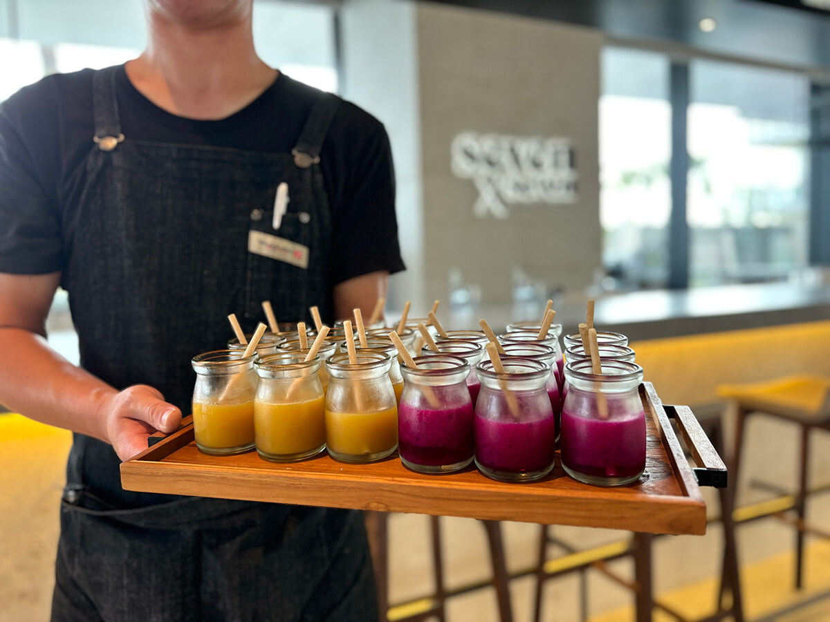 チェックインを終えると、カウンターからフレッシュな島産フルーツを使ったウェルカムドリンクが登場!