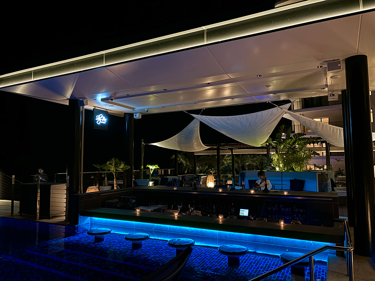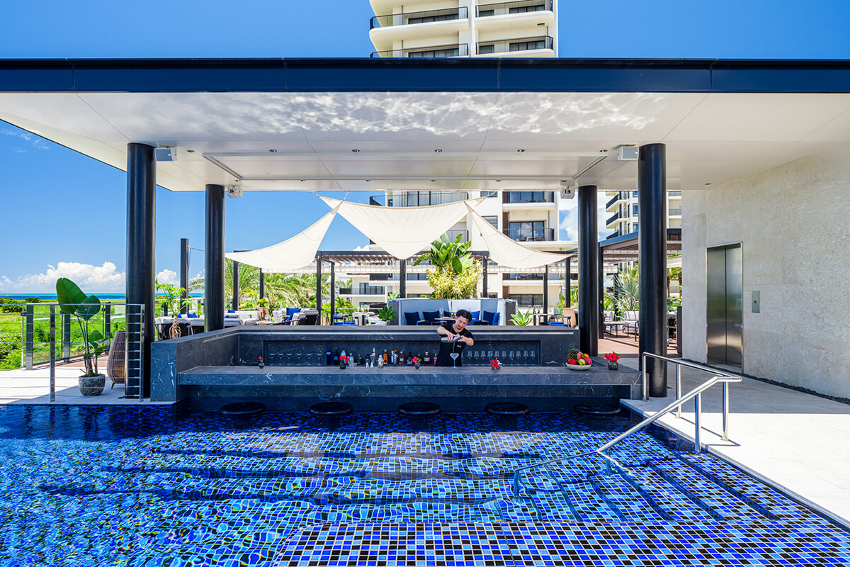 2Fインフィニティプールのプールサイドでトロピカルなカクテルや軽食、シーシャを提供する「スカイ バー バイ バティーダ」。