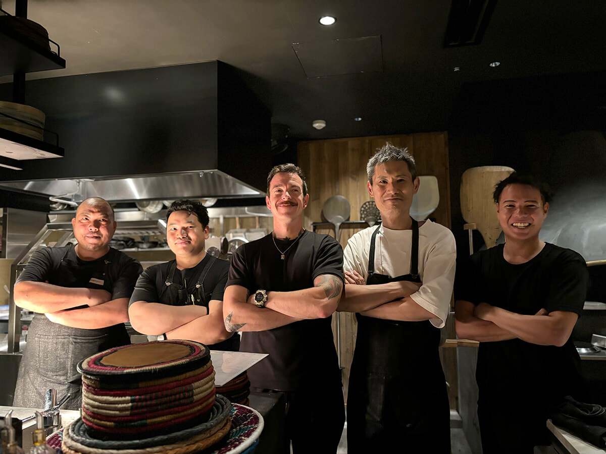 カジュアルで居心地良いサービスとともにスタッフとの会話も楽しんで。写真は、和気藹々と調理するチームシェフの面々。