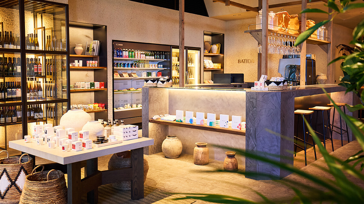 店の一角にはグロッサリーを併設。島特有の湿度や温度に合わせてセレクトしたナチュラルワインや、全国各地のアイスクリームほか、おこもり時間が満喫できる雑貨&コスメもラインナップされる。