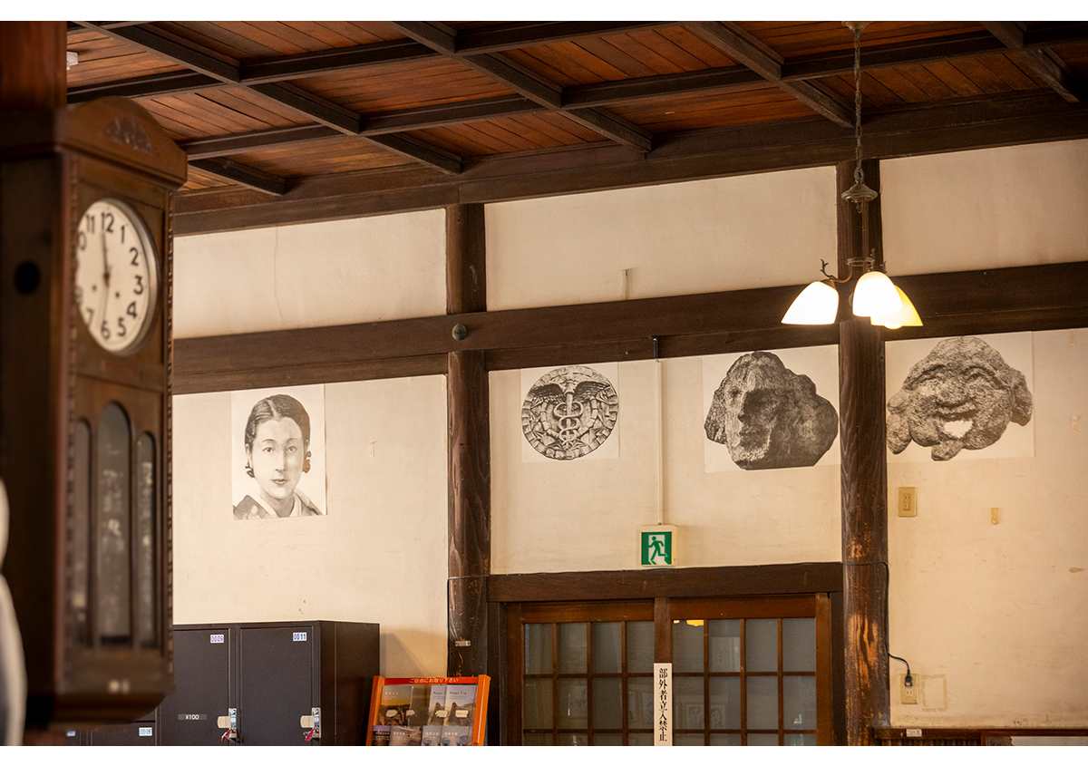 明治12年創設の竹瓦温泉は住民憩いの場。取材時は、芸術祭をきっかけに別府に移り住んだ鉛筆画家の勝正光が展示。