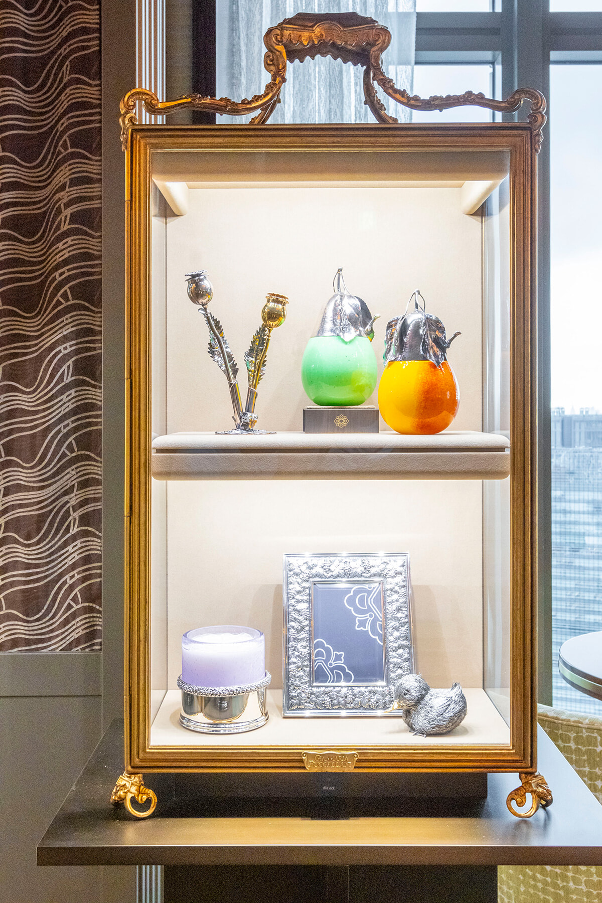ティースタンドは、ブチェラッティの歴史的なショーケースをイメージ。