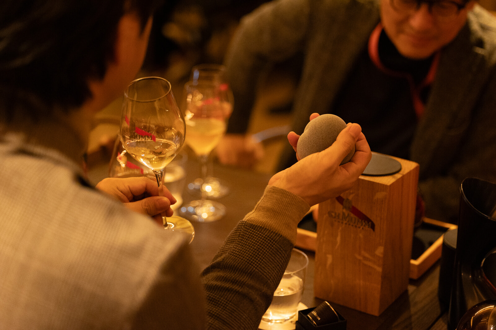 「テラコッタで感じたのはタンニンの収斂性でしょう。ピノ・ノワールが持つタンニンが顔を表したのです。そして、ガラスの球体はボリュームとテクスチャー。メゾン マムのスタイルを感じていただけたのではないかと思います」