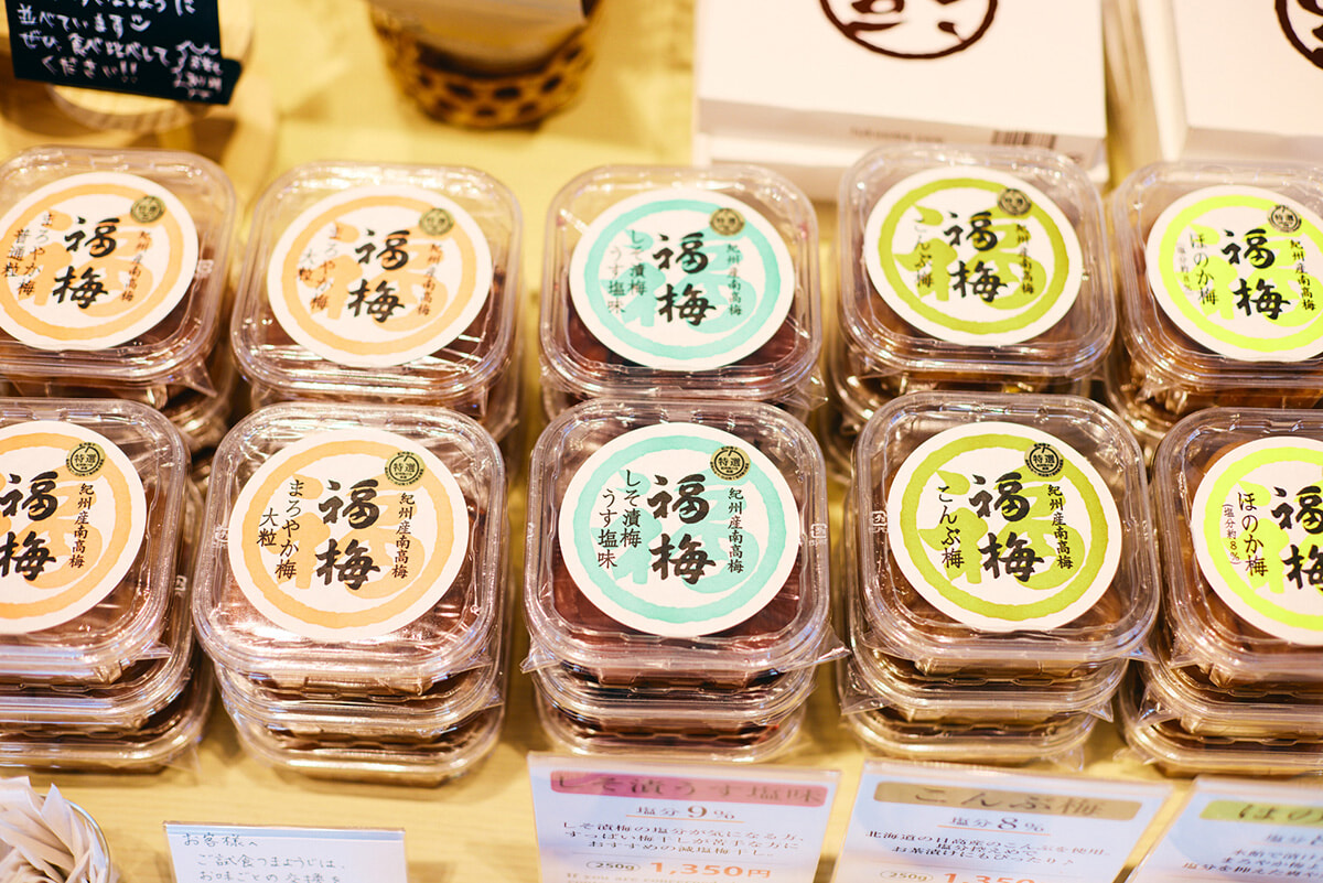 食後はショッピングタイムへ。店内には、パッケージのかわいい8種類の梅干しが並んでいて、すべてが試食可能。塩分控えめで甘味が強いものから、昔ながらのしょっぱい梅干しまで、どれもそれぞれおいしくて迷うこと必至。