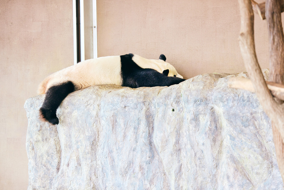 ちなみに、パンダの行動は食べるか寝るかどちらかだそう。その理由は、一般的な草食動物より腸が短く消化率が低いため、大量に食べる必要があるから。省エネのために寝て過ごす時間が多いのだそう。
