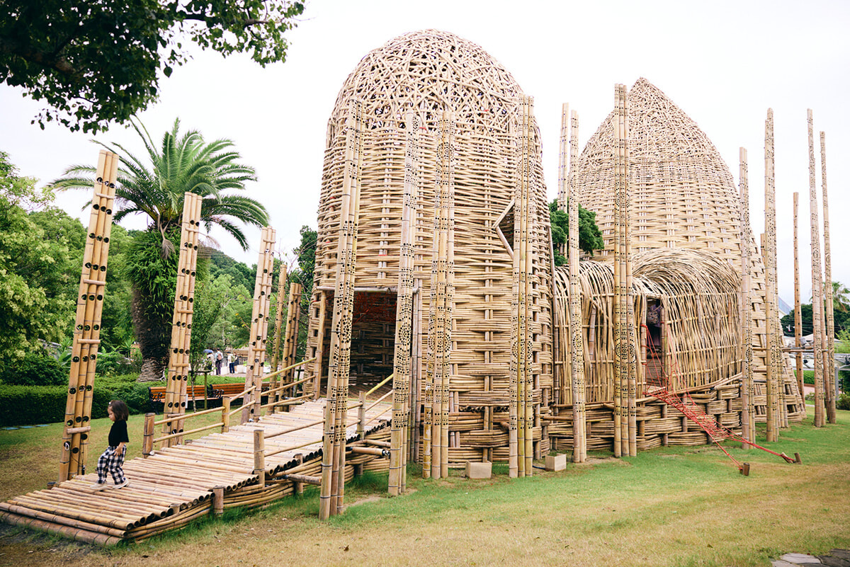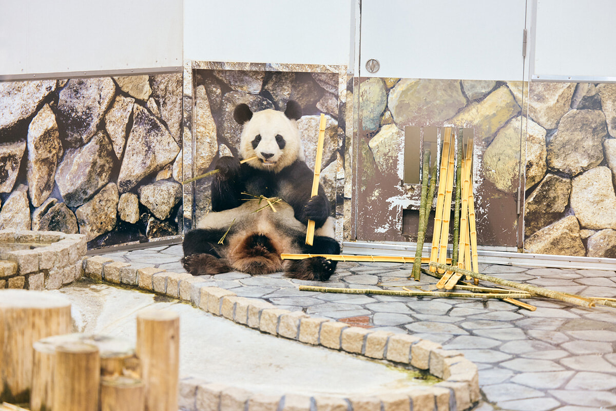 ちなみに、パンダは1日15〜20kgもの竹を食べるのですが、食べ残しも多いそう。そこでパンダに関わる竹を有効資源としてアップサイクルするプロジェクトが立ち上がり、竹5,000本を使用したパンダバンブーアートが作られました。大きな入口から中に入ることもできます。