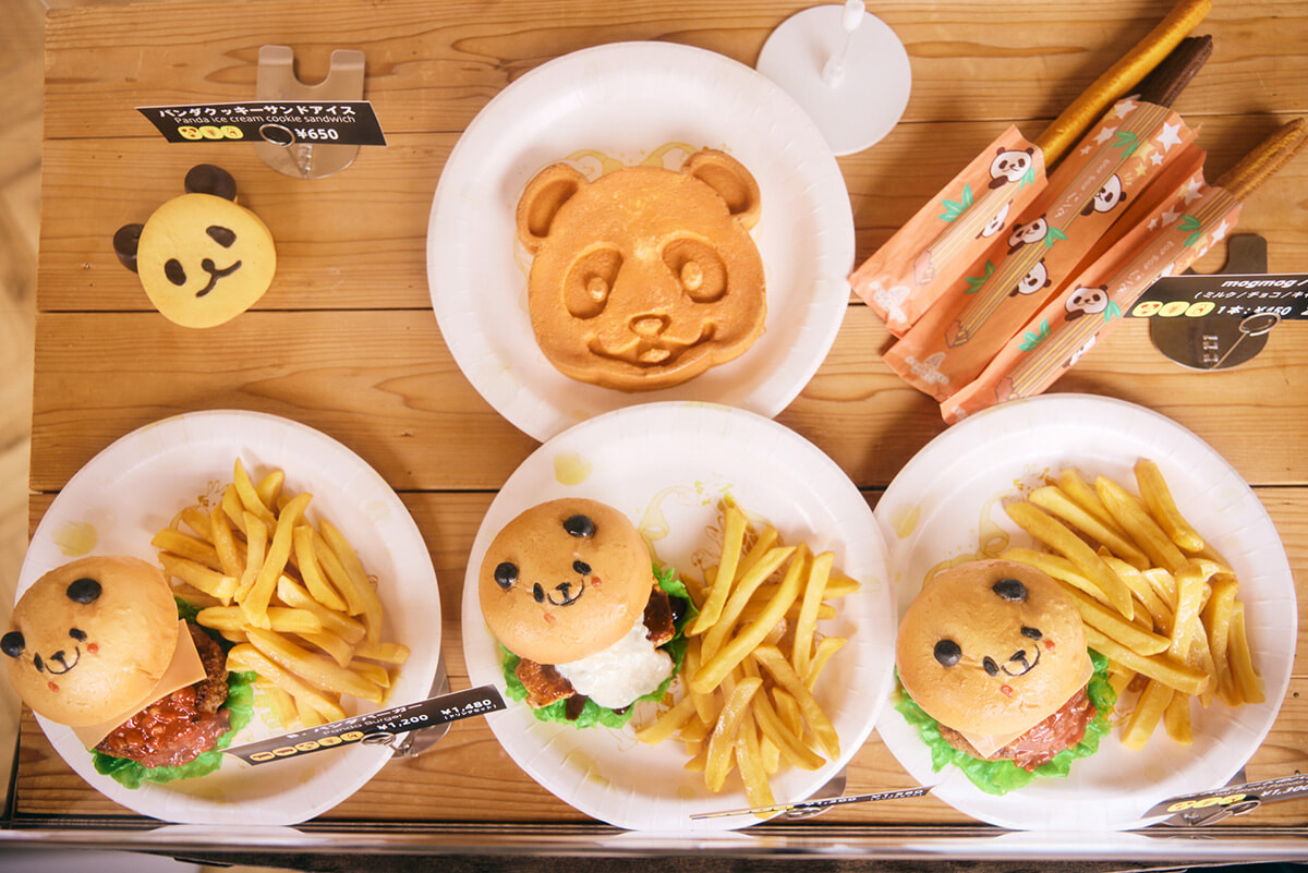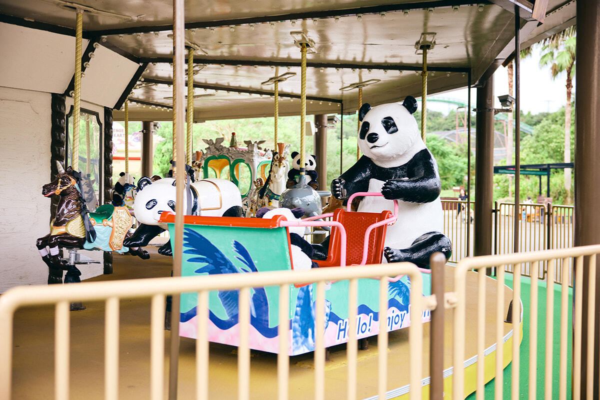 園内はいたるところ、そんなかわいいパンダだらけ。メリーゴーランドもパンダ、レンタルベビーカーもベンチもパンダ、レストランやカフェではよりどりみどりのパンダメニューが待っています。