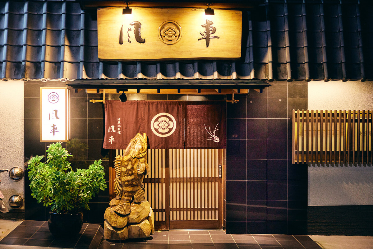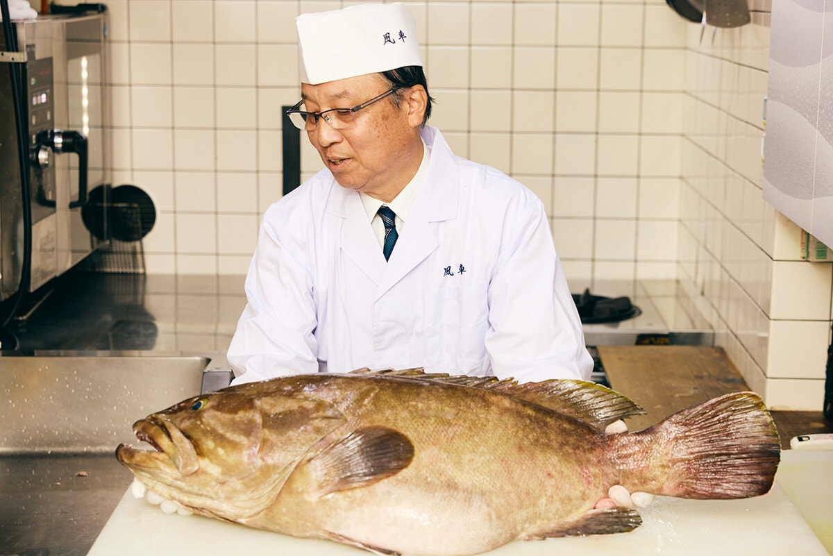 夕食は、地元でも名店として知られる「風車」を予約。貴重な「天然本クエ」のフルコースが味わえるお店です。