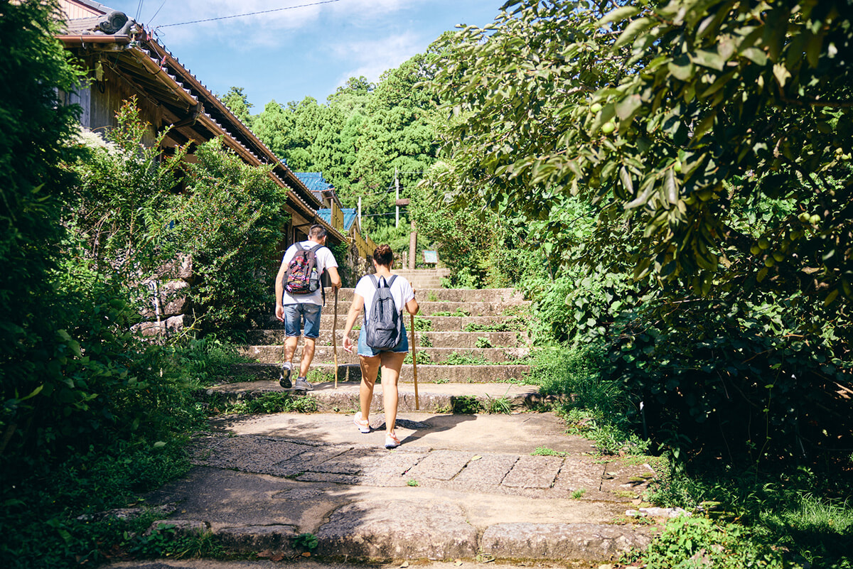熊野古道 大門坂の最初はのどかな民家の脇を通り抜けていきます。