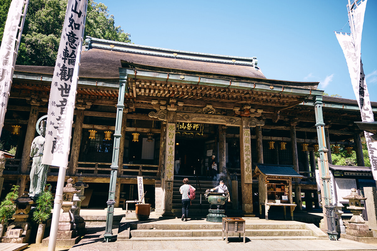 青岸渡寺本堂の後方には三重塔が建ち、那智の滝を望む景観も見えますよ。