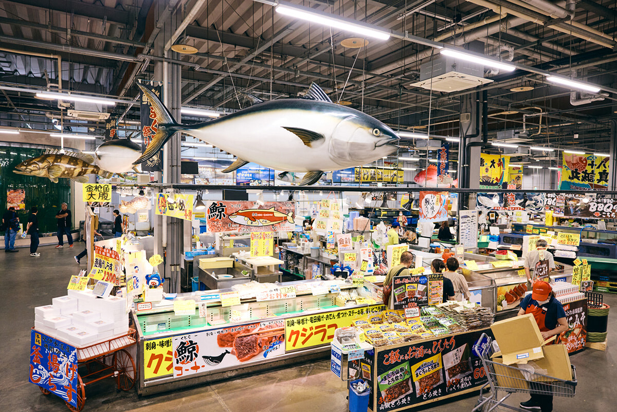 南紀白浜空港から車で10分ちょっとの場所にある「とれとれ市場」は、漁港直営の海産物と紀州の特産物が並ぶ、西日本最大級の海鮮マーケット。最後にここに立ち寄れば、生鮮食品も手荷物で持ち帰りできます。飲食ブースもあるので、お腹を満たしてから飛行機に乗るのもおすすめです。