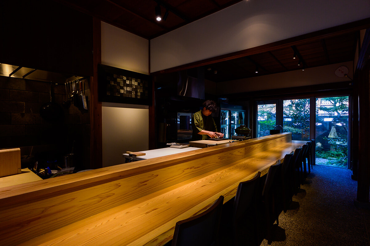 スタートアップ的な店が集まる複合施設、とおりゃんせの2階。カウンターのみで7席。基本はアラカルトとコースで提供。