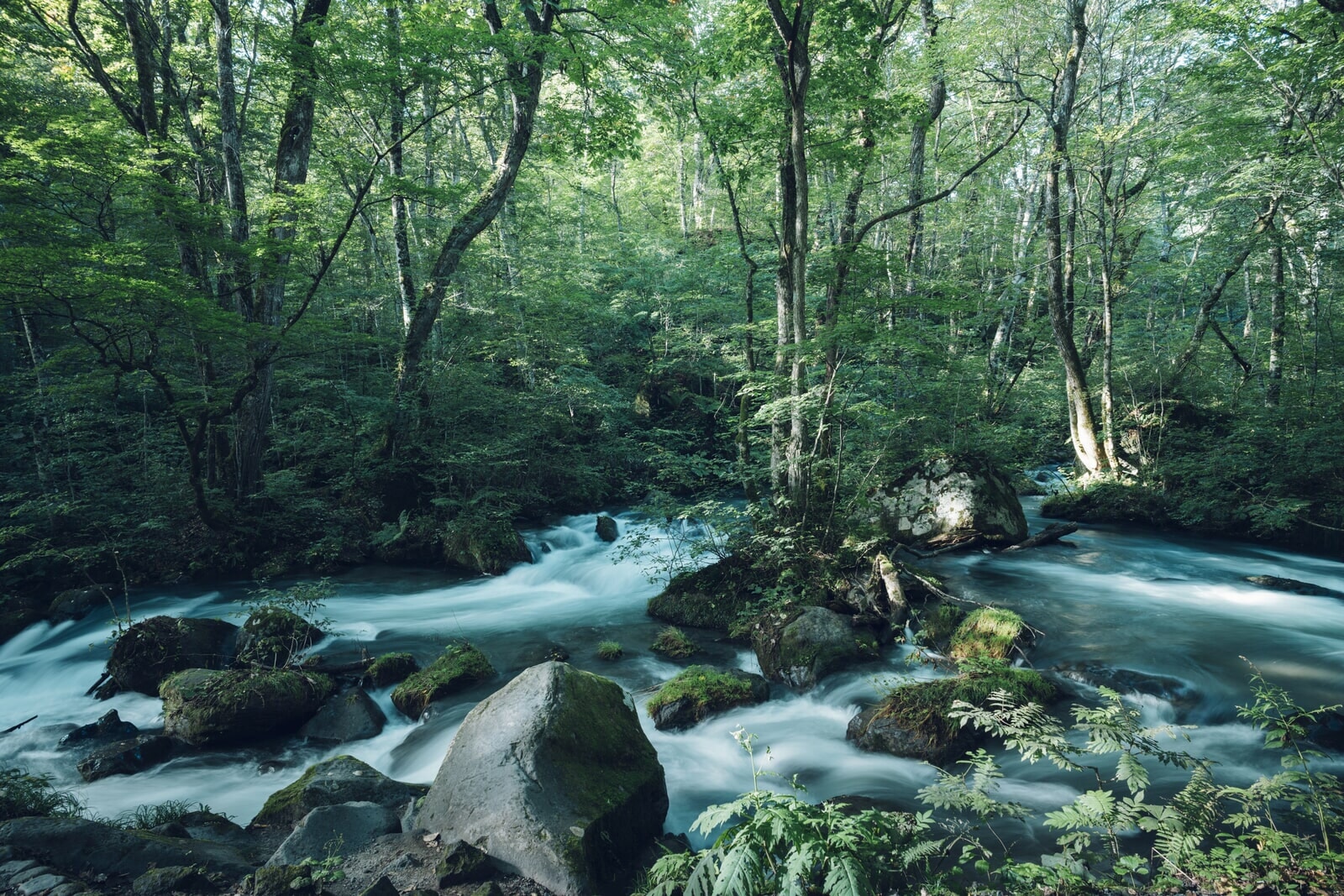 新緑の奥入瀬渓流は散策にも苔ウォークにも最適な爽やかさ。