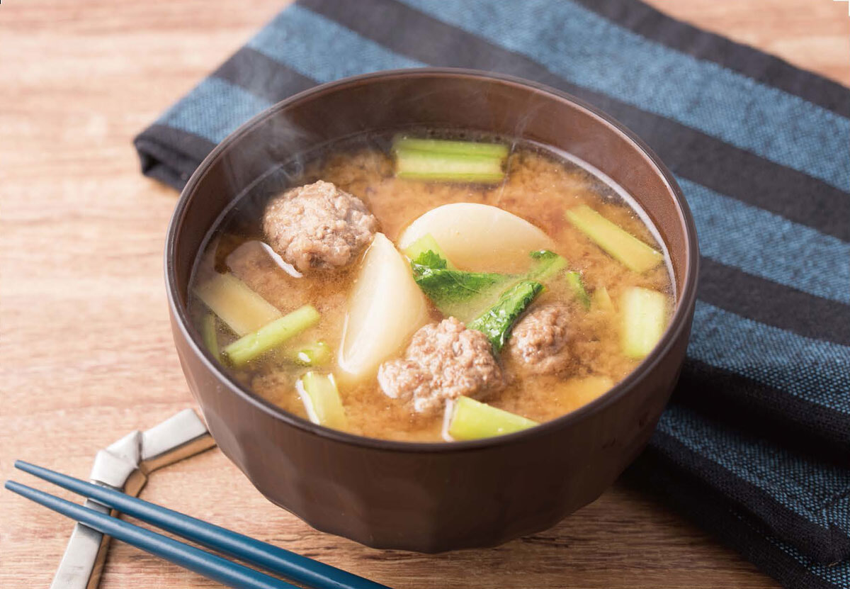 「豚ひき肉とかぶのみそ汁」