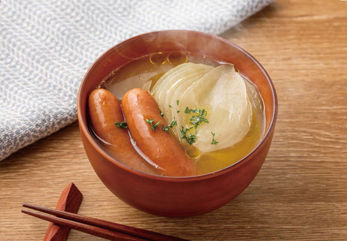 「とろとろ丸ごと玉ねぎとシャウエッセンのみそ汁」