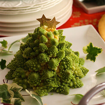 珊瑚のようなロマネスコでクリスマスツリーのサラダ。>>レシピはこちら