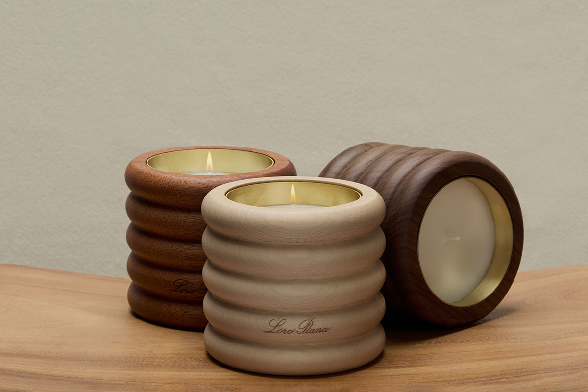 天然素材のみで作られたキャンドルには、きれいな燃焼を保証し、蒸気だけを発生させるピュアコットンの芯が用いられている。木製の容器に収められたキャンドルは、ロロ・ピアーナのテキスタイルの伝統に敬意を表し、繊維の収納袋をイメージして作られたもの。さらにそれぞれのフレグランスは、厳選された木製の仕上げと調和するように組み合わせられている。マホガニーの色調はミスティックフリースの豊かな色合いを引き立て、ホワイトメープルはキャッシュファークラウドの純粋さを高め、ウォルナットのブラウンはスモーキーツイードのアーシーな滑らかさを強調する。