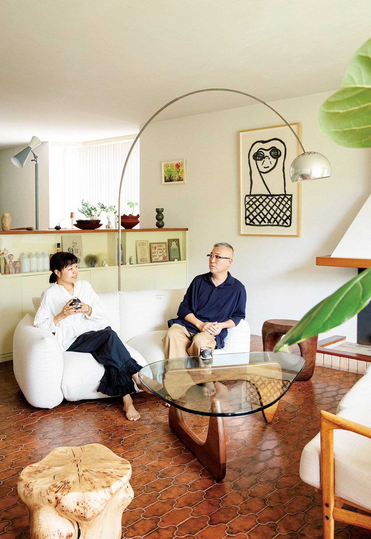 日本のモダニズム建築を代表する建築家・吉村順三が1970年代に手がけたユニークな集合住宅に暮らす、チダコウイチと野口アヤ夫妻。実は以前同じ建物の隣の部屋に住んでいたことがあり、思い入れがあって20年以上の時を経て戻ってきたという。現在は都内にあるこの集合住宅のほか、秋谷にも古い物件をリノベーションした住居を構えている。さらに代官山でも100年近い日本家屋を改築し、絵画、陶芸、木工など幅広いアートを扱うシソンギャラリーを夫婦で主宰する。