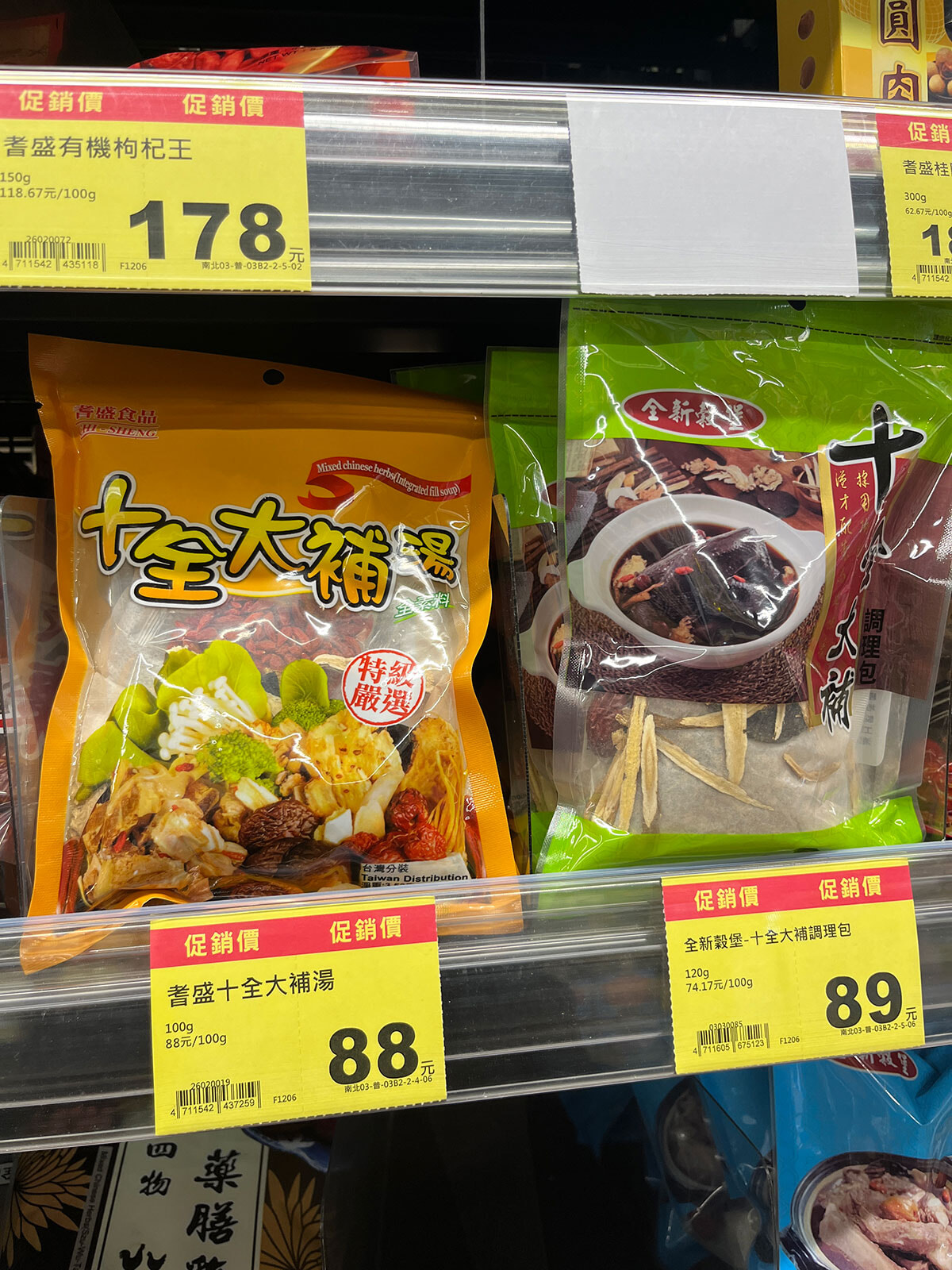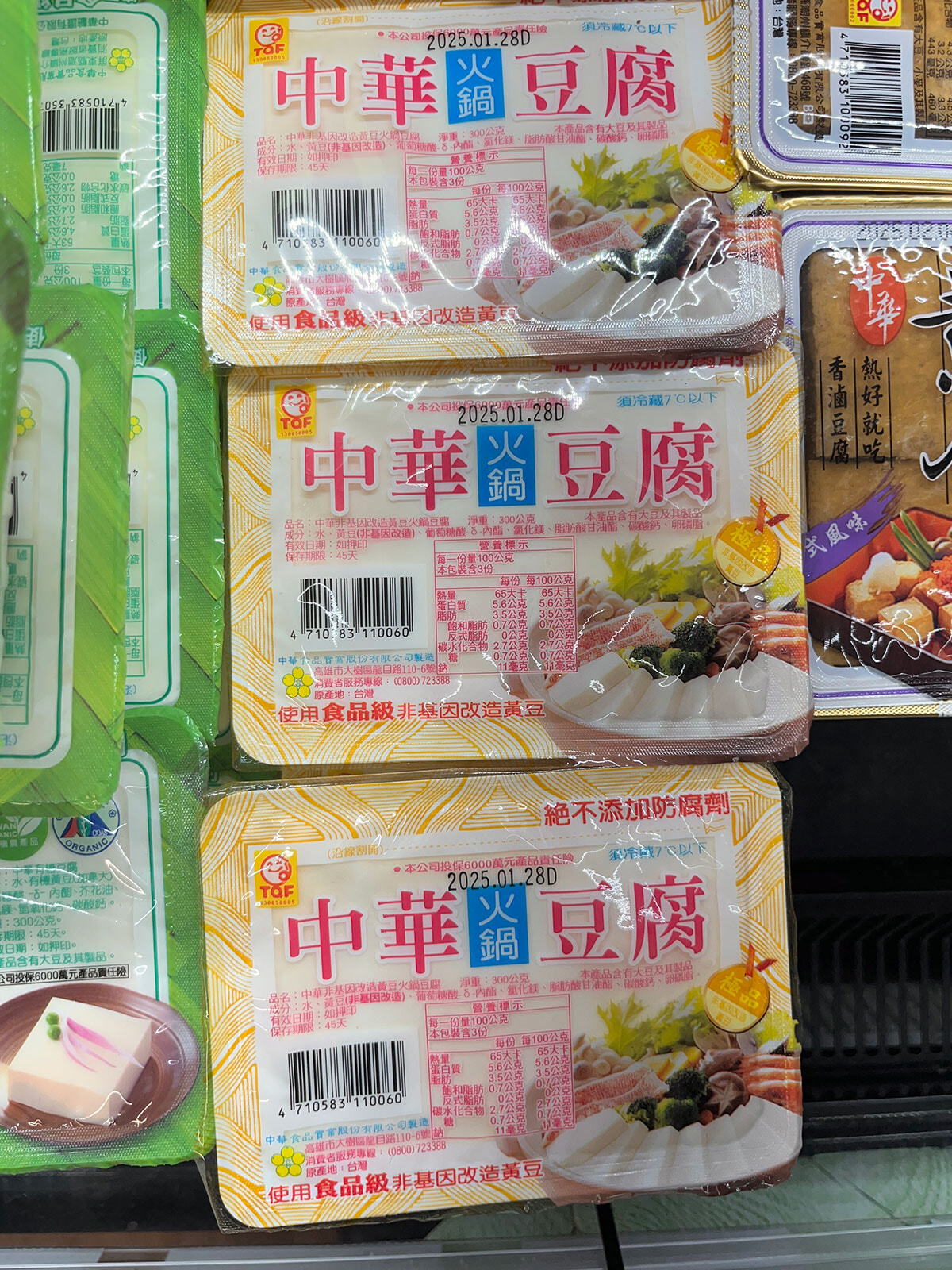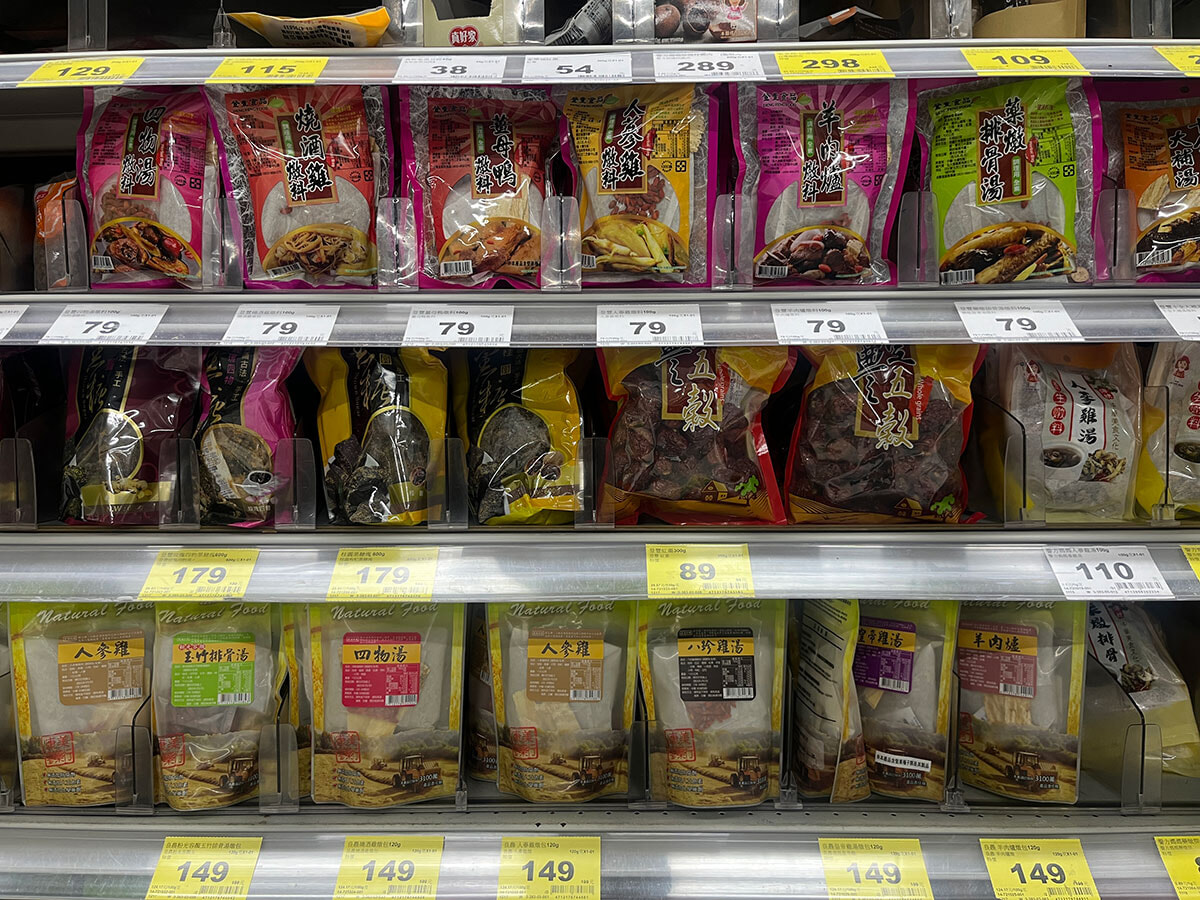 ドラッグストアもいいけどスーパーはもっと好き!台湾の人達のリアルな生活が垣間見えて、今でも意味なく寄ったりしちゃいます。火鍋天国の台湾ではスーパーの一角に火鍋の材料コーナーがありますよ。これと食材を煮込めば完成しちゃヨー!ってやつ。寒い今の時期ならアヒル(鶏肉でも問題なく絶対美味しい)と生姜、お酒などでつくる薑母鶏鍋なんて最高。乾物なので軽いところも、ニクイぜ!ちなみにチルドコーナーには煮崩れしない、ちょっと硬めな火鍋用の豆腐も。しかもコレ、コンビニにも売ってるんだから火鍋への熱量がパねぇのよ。