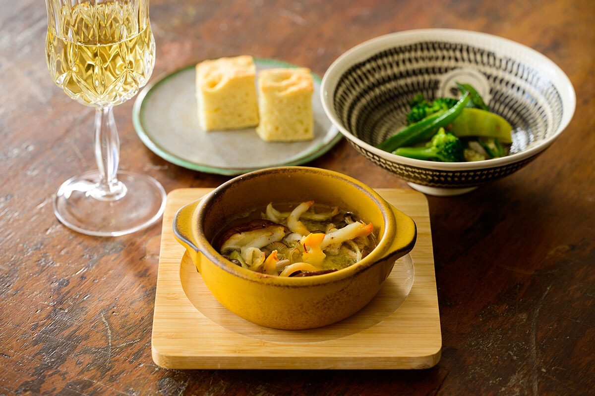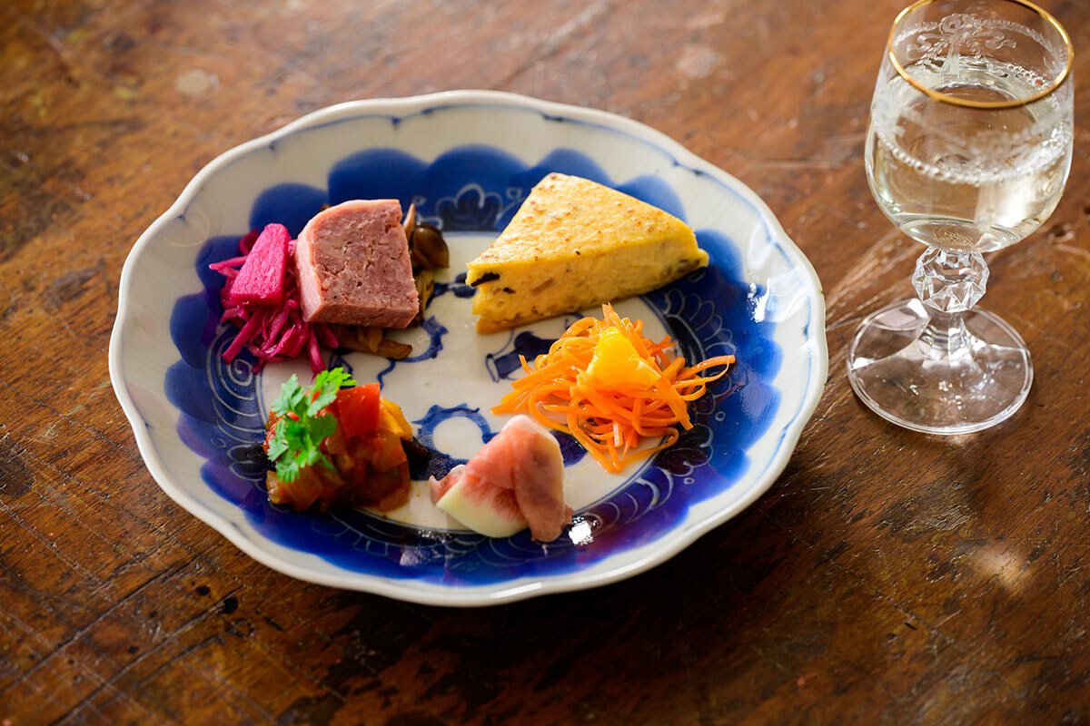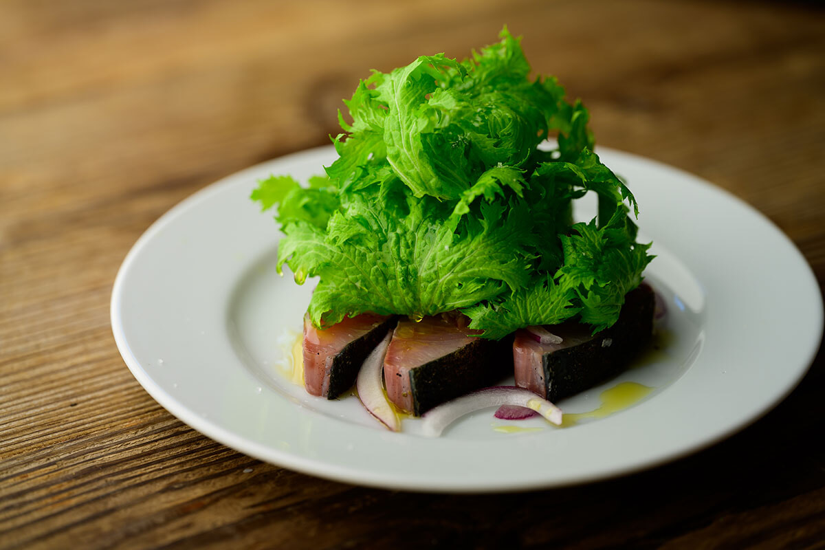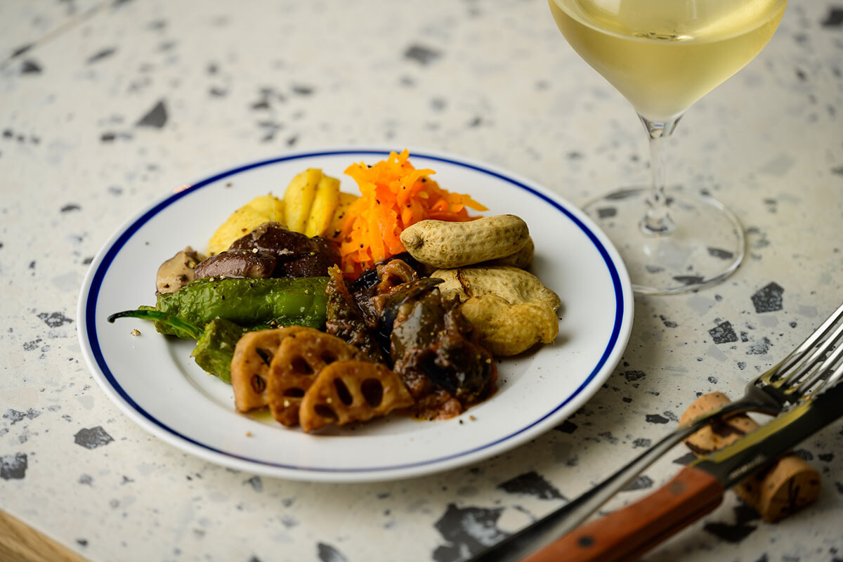 山本啓介による地元野菜と炭火焼きの肉料理が人気のイタリアン、ジブンチ。その系列店が2024年10月にスタート。「もっとシンプルにその場を楽しめる店を」と考え、手頃な価格で予約を取らない形式に。金沢ゆずこしょうを隠し味にしたカルパッチョ的一皿や野菜やフルーツ、魚など、この地の素材の粋な組み合わせを楽しめるイタリア料理を小皿で提供。気軽に立ち寄れるのがいまの気分だ。