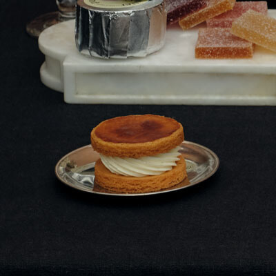 横浜の老舗、ホテルニューグランドから今年、直営ショップが誕生。「モカルーロ」や焼き菓子に並ぶ看板メニューが南仏スイーツ「トロペジェンヌ」。ブリオッシュ生地で挟んだクレーム・パティシエールとホイップクリームでリッチな味わいに仕上げた。