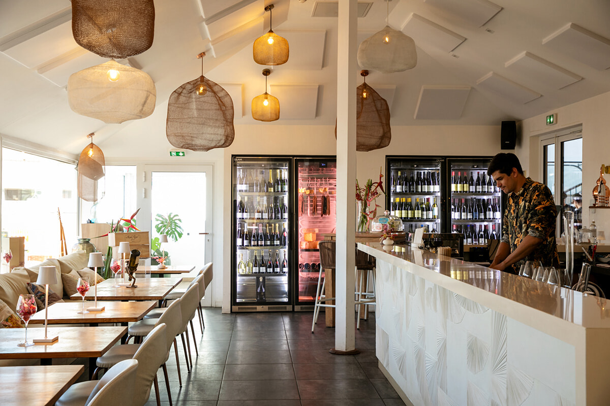 オーナーのジミーは、シャンパーニュ地方で学び、シャンパンメーカーでも勤務した経験から、シャンパン愛は格別。タヒチは屋外が暑いので、一般的な温度より冷やして提供しているそう。また、セラーにはナチュラルワインやヴィンテージのお宝ワインも! アペロに、食後に、ワイン好きなら必ず寄りたい1軒だ。