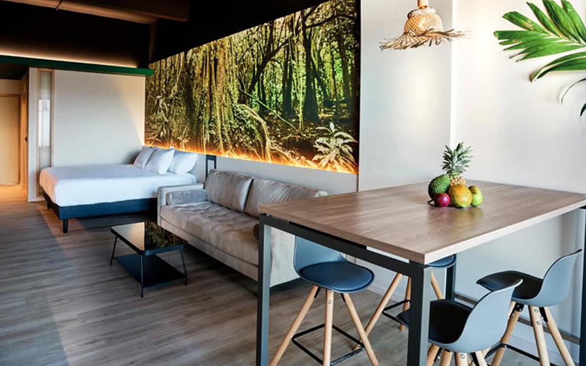 モーレア島に向かうフェリー乗り場が目の前、という好立地に立つ老舗ホテルが、2022年にモダンな装いで生まれ変わった。2段ベッドの部屋から簡易キッチン付きの広い部屋まであり、短期でも長期でも快適に滞在できる。