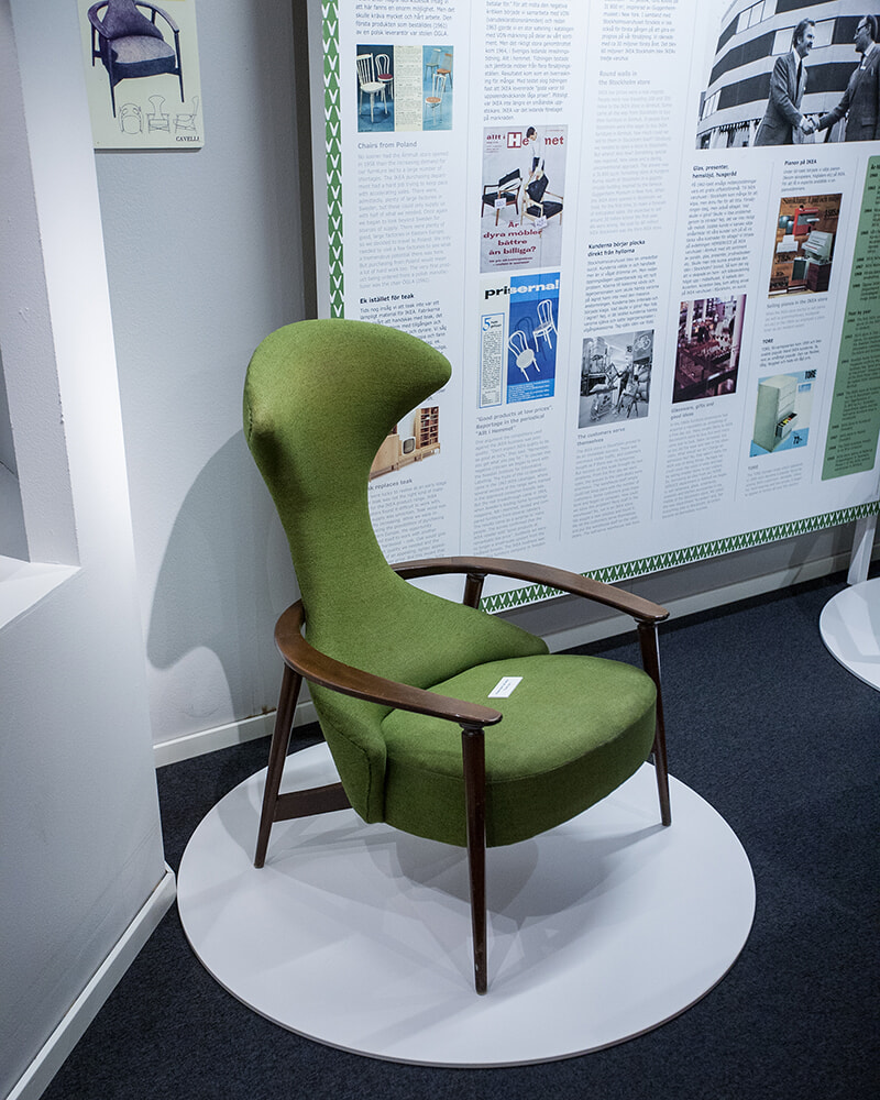 スウェーデンのエルムフルトにあるIKEAミュージアムにて。ベント・ルダによりデザインされ1959年に発売されたチェア「Cavelli」が展示されている。photography: shutterstock