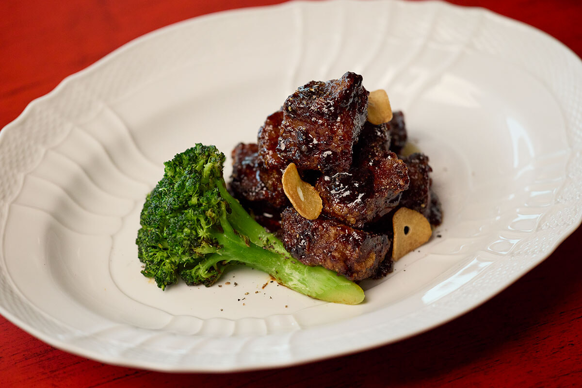 「黒毛和牛フィレ肉 ペンジャ産黒コショウ炒め黒ニンニクソース」¥12,800