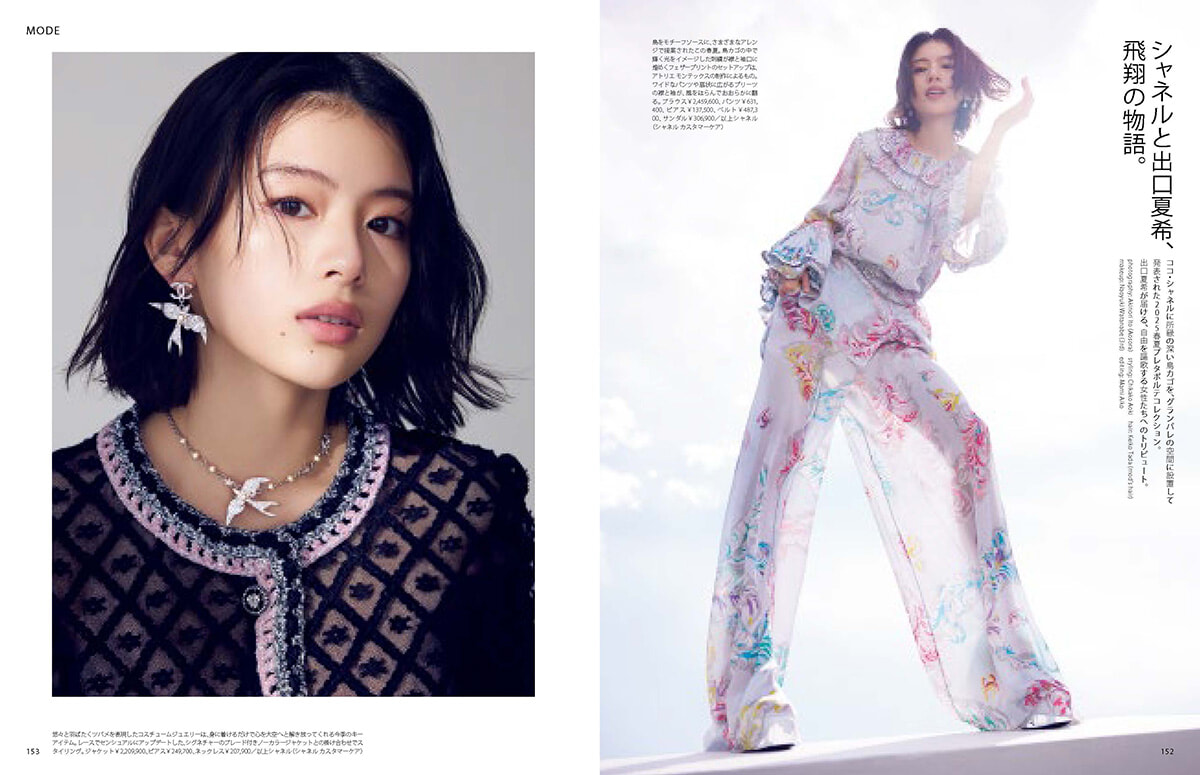 出口夏希さんもシャネルを纏ってモード撮影。いつもの出口さんよりもぐっと大人な雰囲気で。