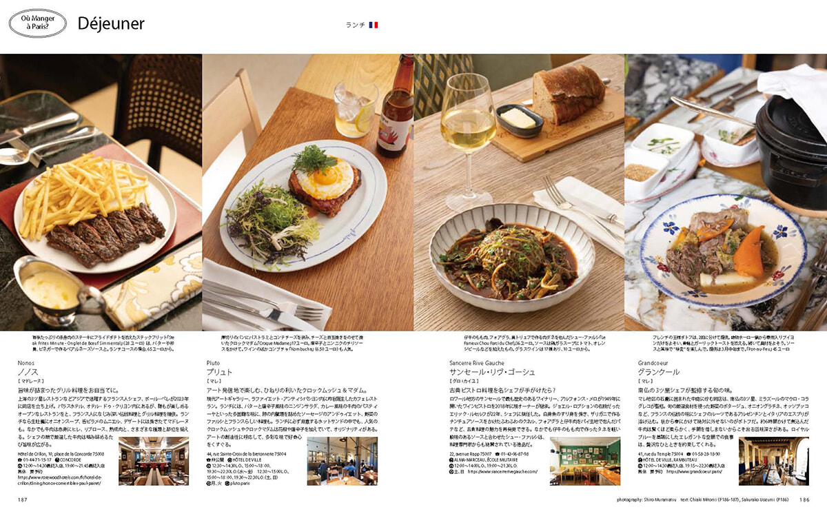 旅のいちばんのお楽しみであるグルメは、今回20ページの大ボリューム。朝食・ランチ・カフェ・アペロ・ディナーと、朝から晩までパリのおいしいを食べ尽くして!