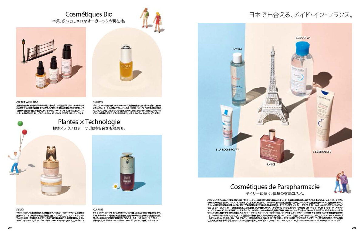 美容も今回はフレンチスタイルに特化。もともとFeel Good Beautyとは本国フランス版が発信した企画で、心地よさを追求しながら無理なくキレイになる美容的哲学に共感し、ジャポンのエディトリアルにも取り入れました。フレンチメイドの逸品や本国版の美容エディターのコメントはとってもためになります。