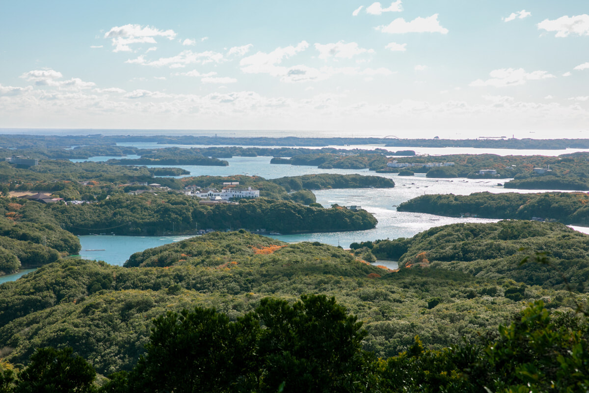 60もの島が浮かぶリアス式海岸の英虞湾を横山展望台から一望。