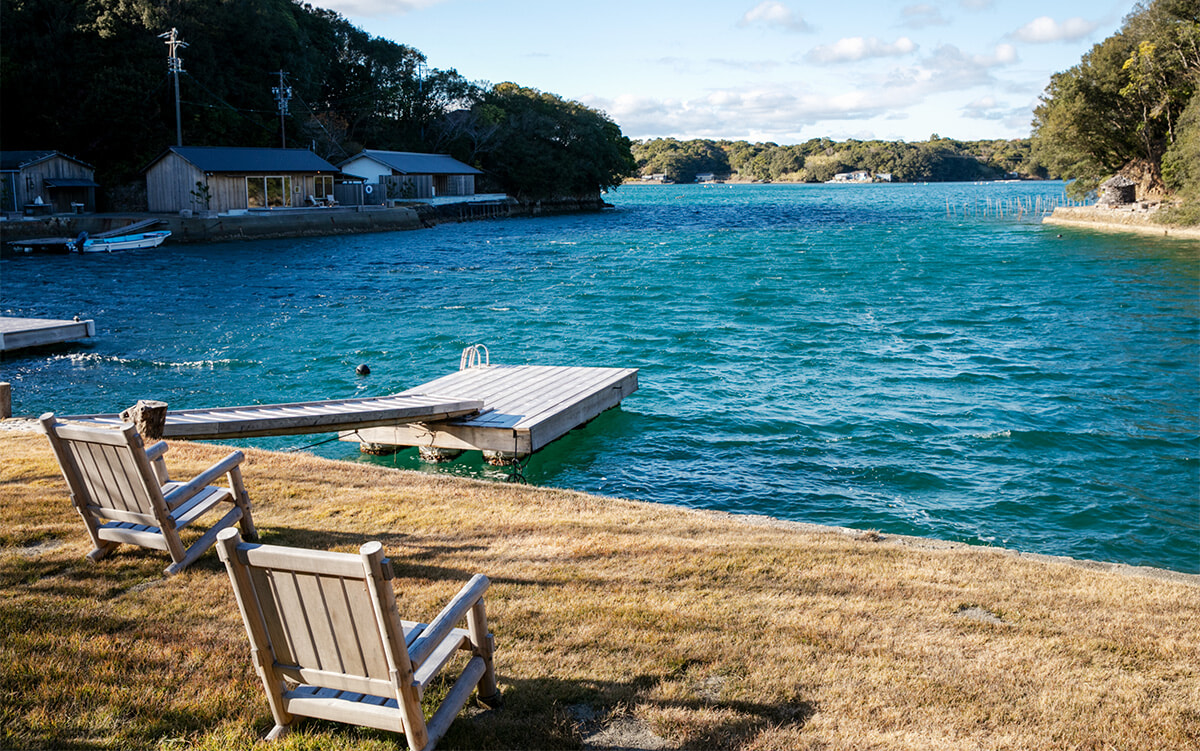 1931年創業の覚田真珠が、英虞湾の小さな入り江にある、かつて真珠の養殖場・加工場だった建物を改装し、リトリートとしてオープンしたのが2023年6月のこと。見張り番がいたという小さな小屋を拡張した「MIHARASHI」はプライベート感が高く、元工場(こうば) の3部屋はデッキの下はすぐ海、というロケーション。テラスでぼんやり海と緑を眺めているだけで癒やされていくのがわかる。が、本当の癒やしはそれだけではない。さまざまなアクティビティに参加して、”ここでしかできない”体験をしよう。