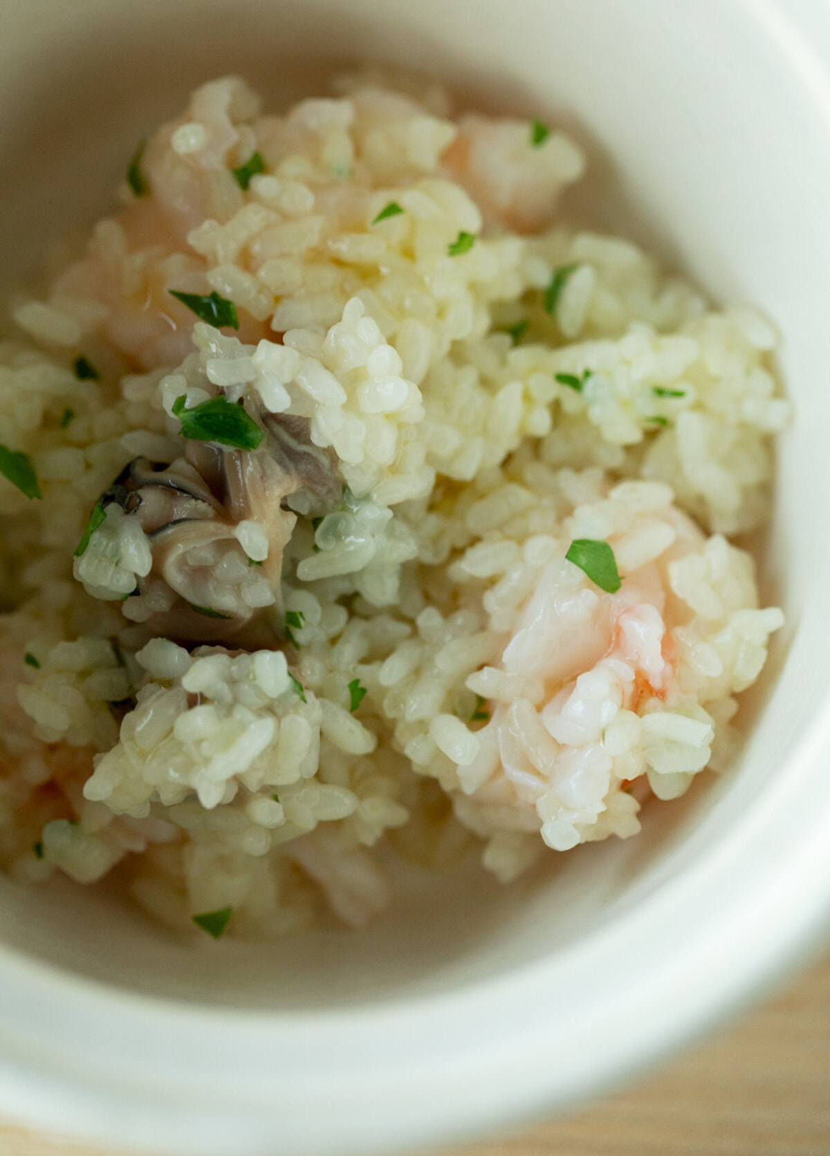 ハマグリの出汁でリゾット仕立てにした「伊勢海老と蛤ご飯」