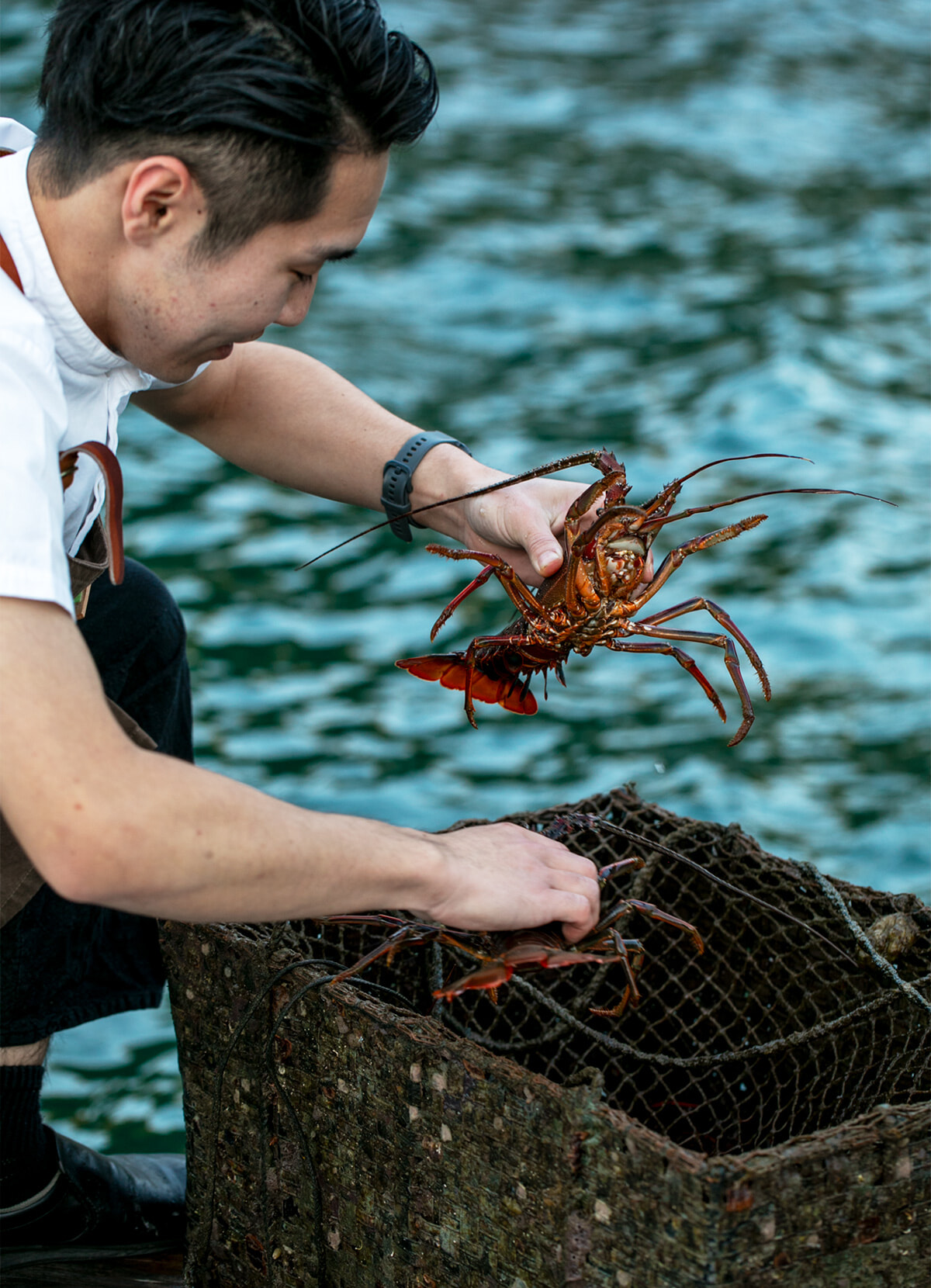 ディナーや朝食でいただく食材と出合いに行く楽しみもある。漁師と海に出たり、伊勢海老を網から外したり。地元食材を知り尽くしたシェフが、和食ベースの”里山キュイジーヌ”で提供する料理を一層おいしく感じられるだろう。