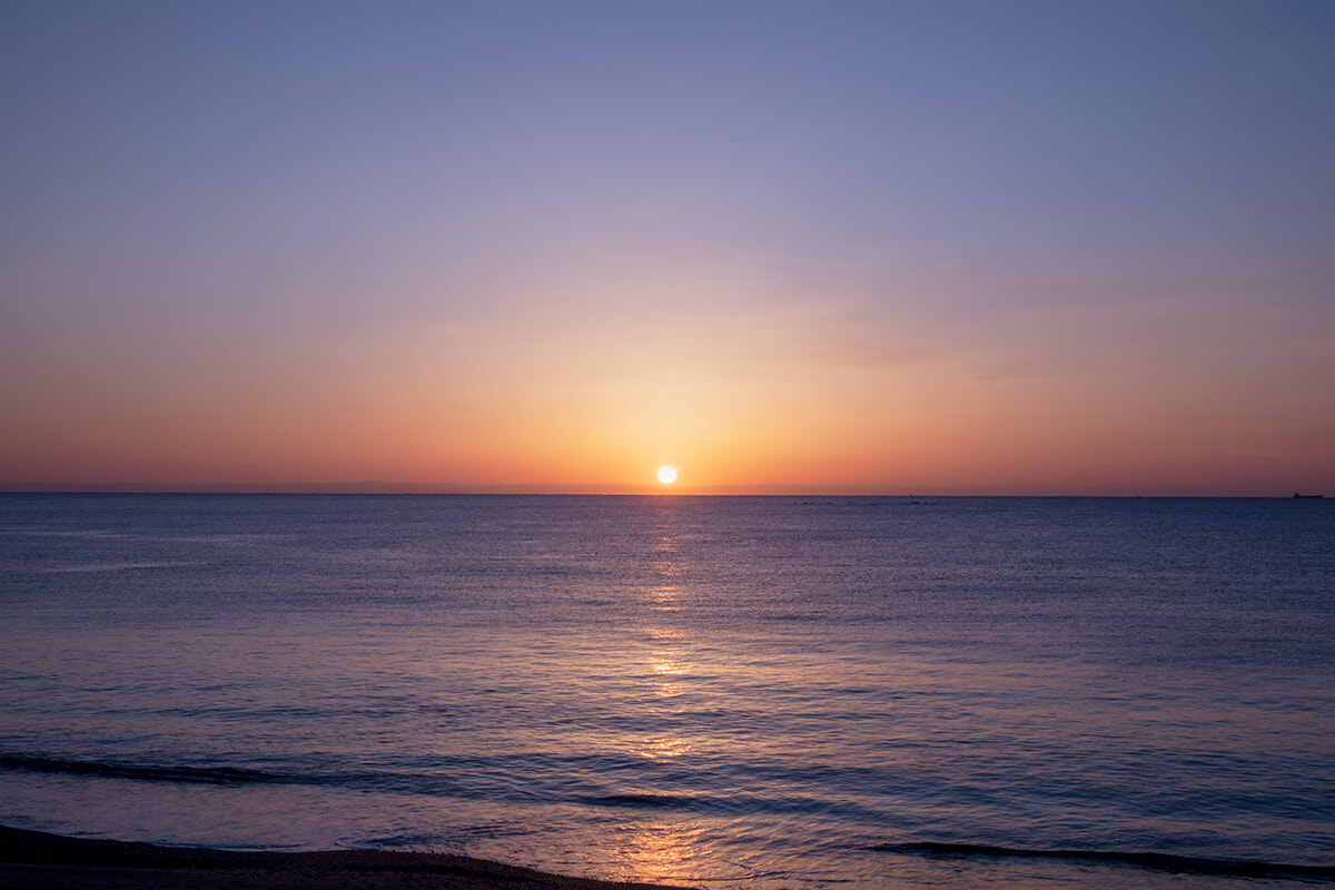 朝散歩で、片田の集落を通って大野浜で日の出を拝む。志摩市最南端の麦埼灯台に行くコースも。
