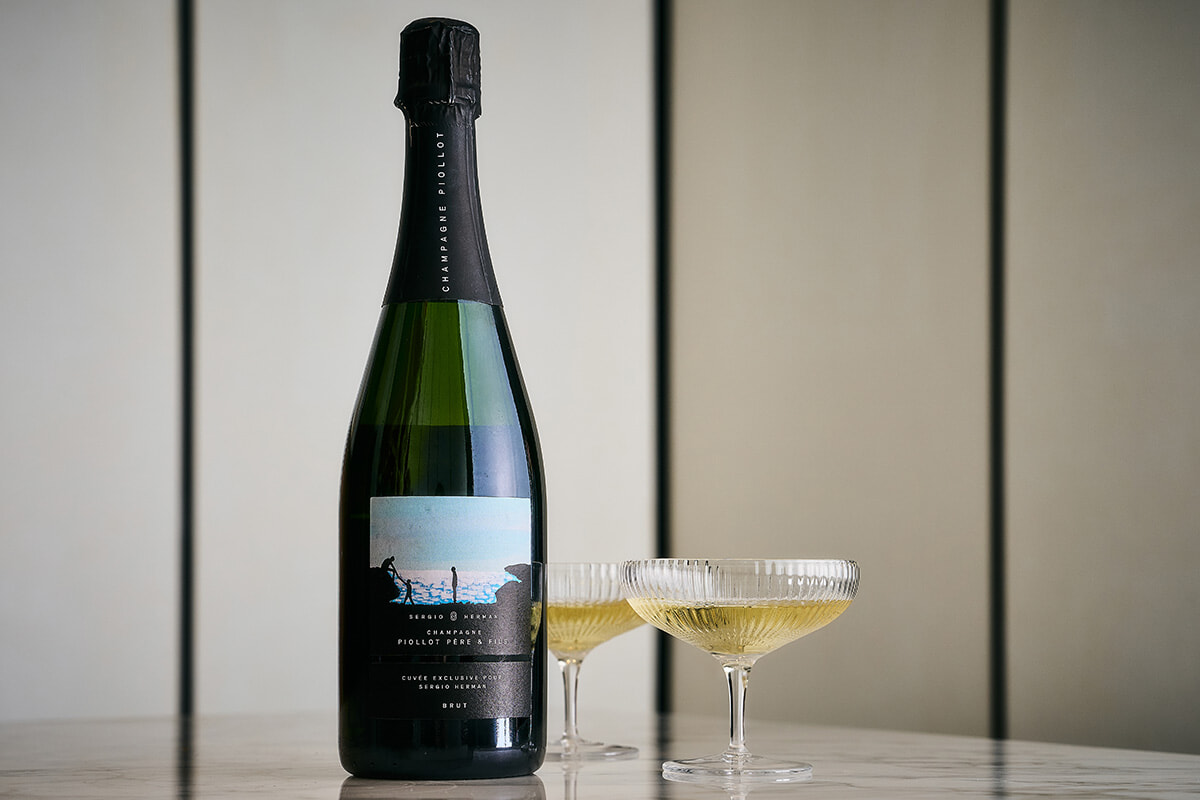 料金:4コース¥9,570、グラスシャンパーニュ「ピオロ – ブリュット レゼルヴ キュヴェ セルジオ ハーマン」付き¥12,100など。(税込み・サービス料15%別)