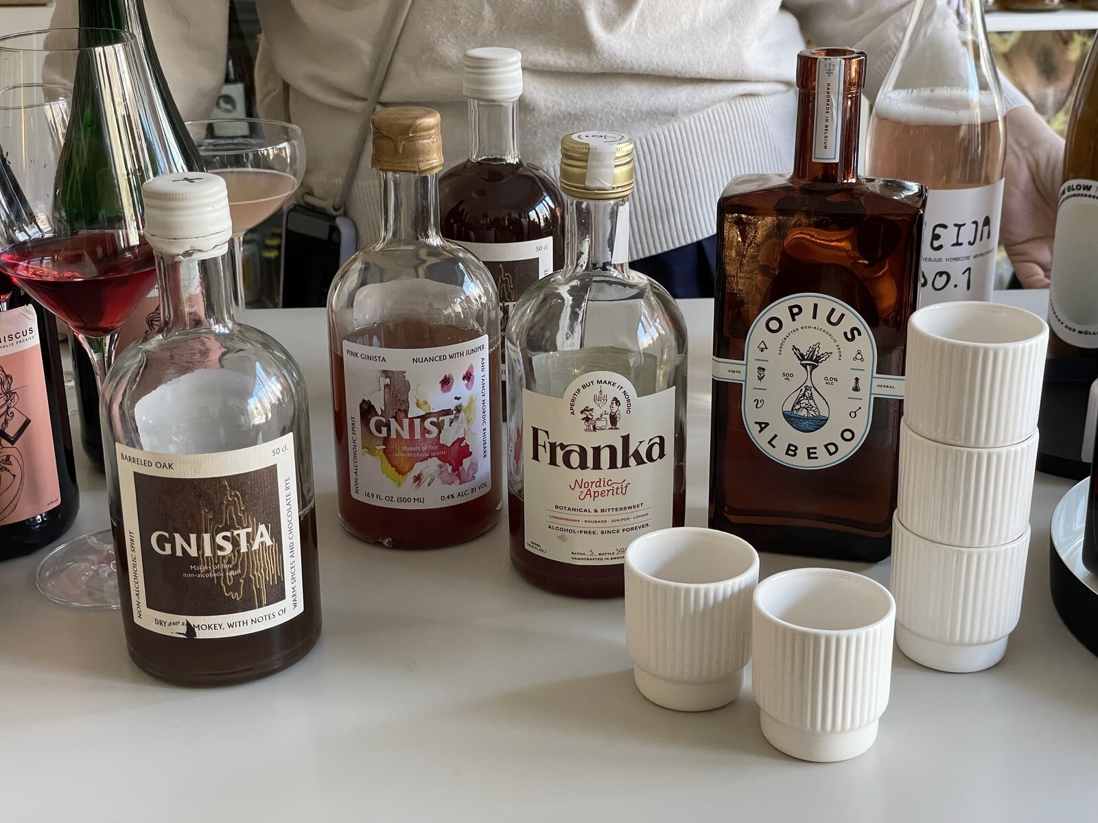 スウェーデンのブリュワリー「Gnista」が展開するスピリッツは、苦味や辛味(!)も幅広く、色々なカクテルのレシピも添えられているので、色々なドリンクを実験してみたくなる。シングルオリジンのジュースやコンブチャ、リンゴ酢をベースにしたシュラブ……ジェニファーさんの言葉通り、アルコールフリー、プロキシの世界の幅広さ、奥深さに感嘆。楽しく杯を重ねてしまうが、全く酔いが回らないのも嬉しいところだ。