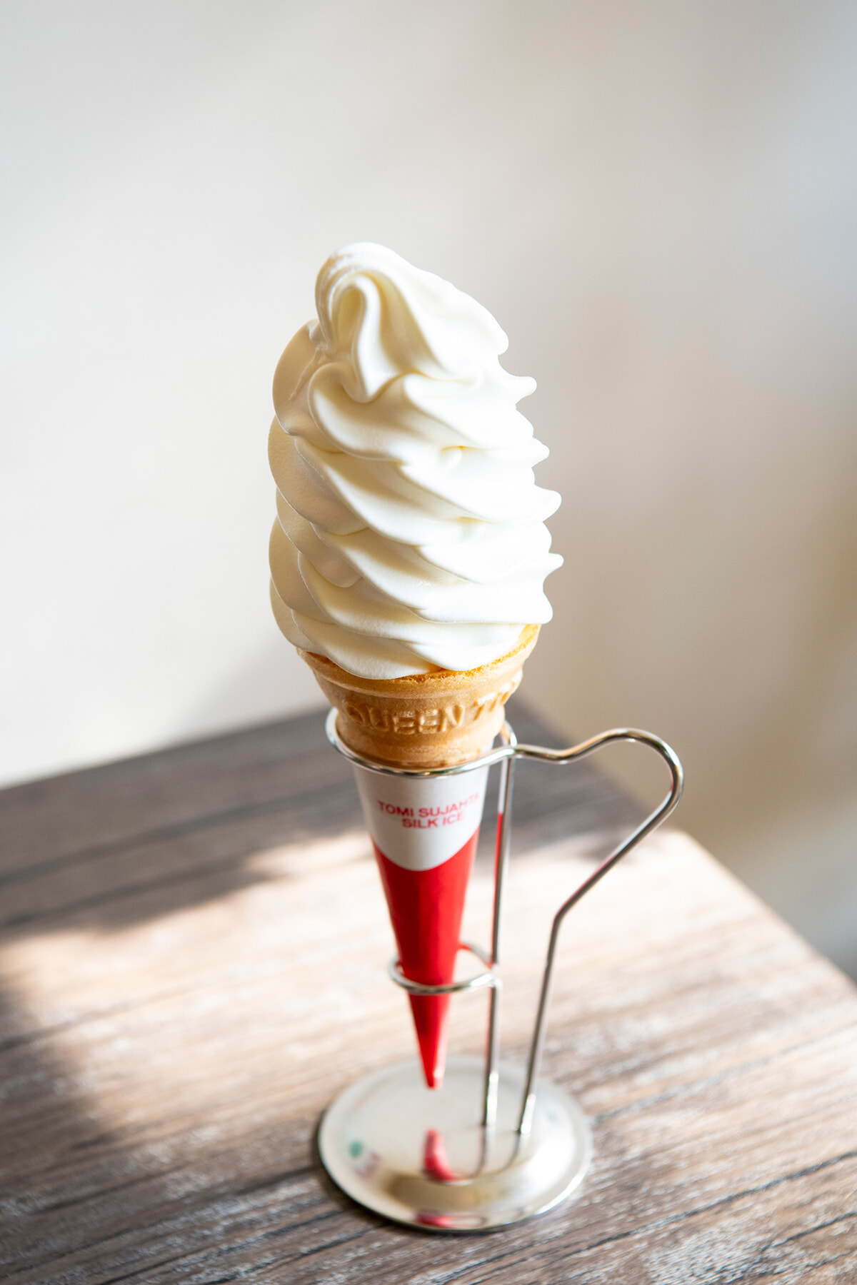 アニマルウェルフェアの酪農を営むいでぼくのミルクで作ったソフトクリーム(¥650)が人気。素朴な甘味と牛乳のクリアな深みで一度食べたら忘れられない味。アフォガートや塩キャラメル味もおすすめ。ライブを開催したり、地元アーティストのサロン的役割も。