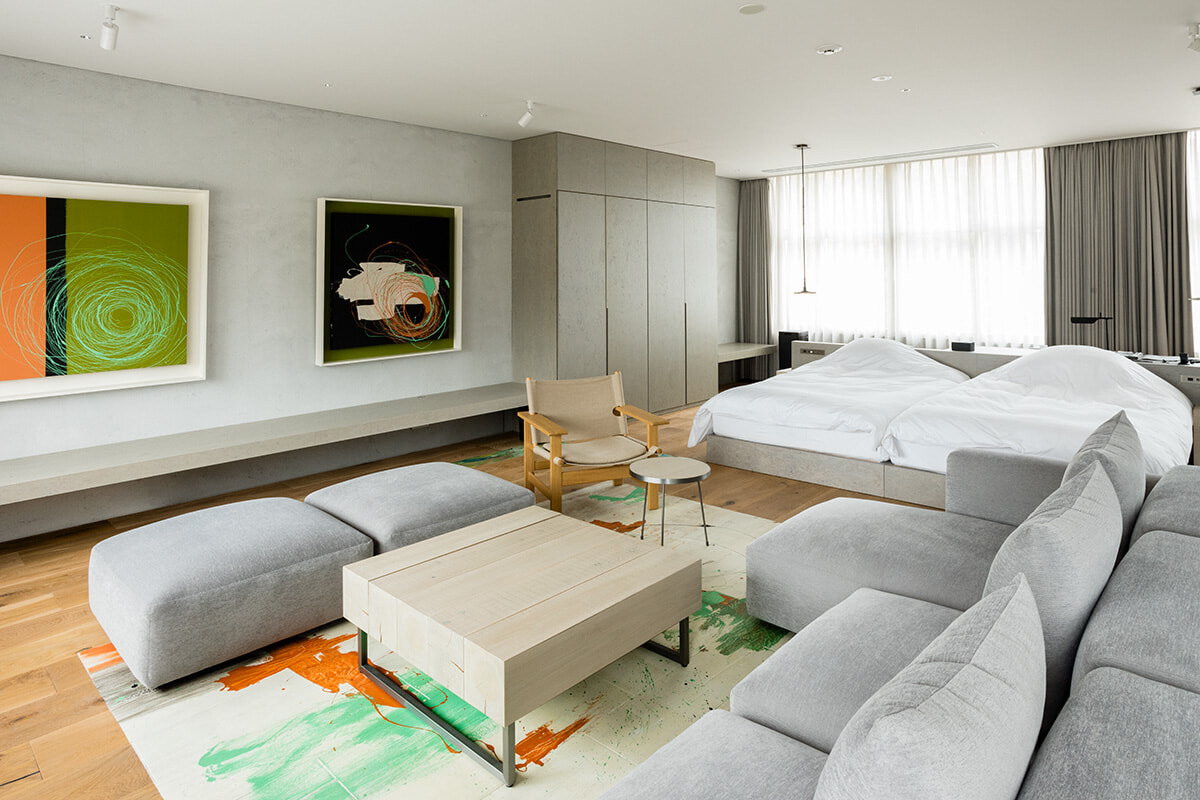 スイートルームは元図書室。2018年、フェンディが選ぶ世界のアーティストにも選ばれた小川貴一郎の作品が並び、自ら壁や床に直接ペイントした特別仕様。館内の作品は購入可能。