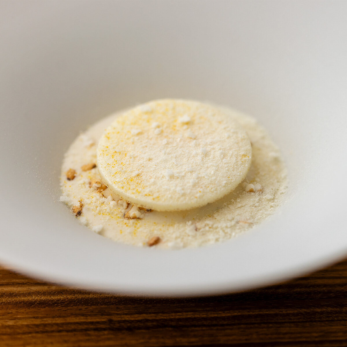 食材はすべて近所から。西田農園の淡く甘いカブ、農口尚彦研究所の米麹はソースに。柚子胡椒で辛味を添える。