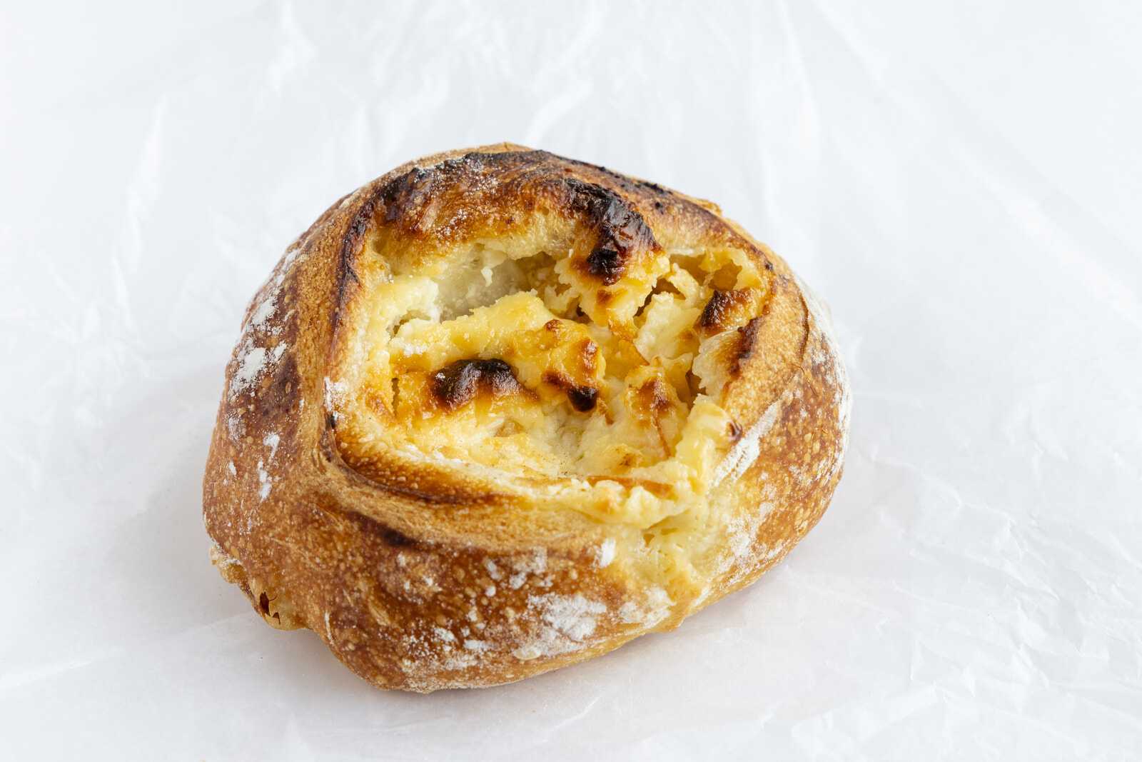 金沢で開業して8年、2022年に小松へ移転した人気のベーカリー穀雨。北海道産小麦を使用したパンは惣菜から菓子、自家製酵母によるハード系まで定番の40種のほか季節のパンが並ぶ。週末は朝8時のオープン前に列ができ、昼過ぎには売り切れに。早起きして出かけたい。