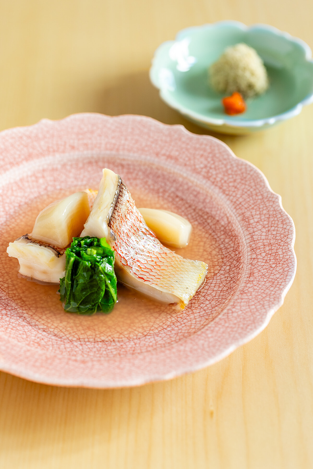 淡い味わいのぐじ(甘鯛)が口中でほどける「若狭ぐじの昆布蒸し」