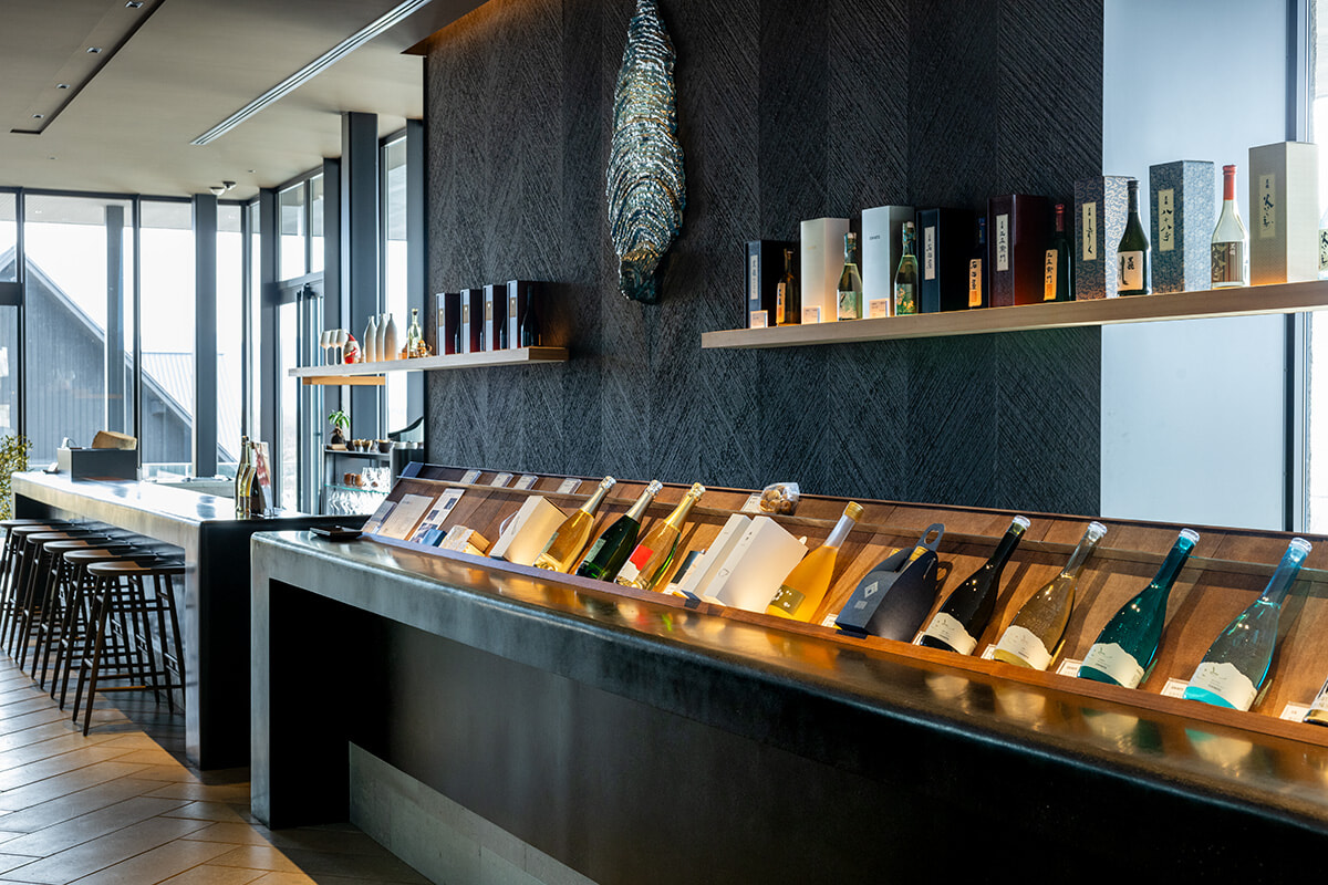 2022年に黒龍酒造の複合施設として誕生したエシコト。その看板といえるのが酒樂棟にあるショップ兼テイスティングバー。黒龍シリーズのほか、ここでしか買えない限定酒「ESHIKOTO」3種のテイスティング(¥2,500)も。