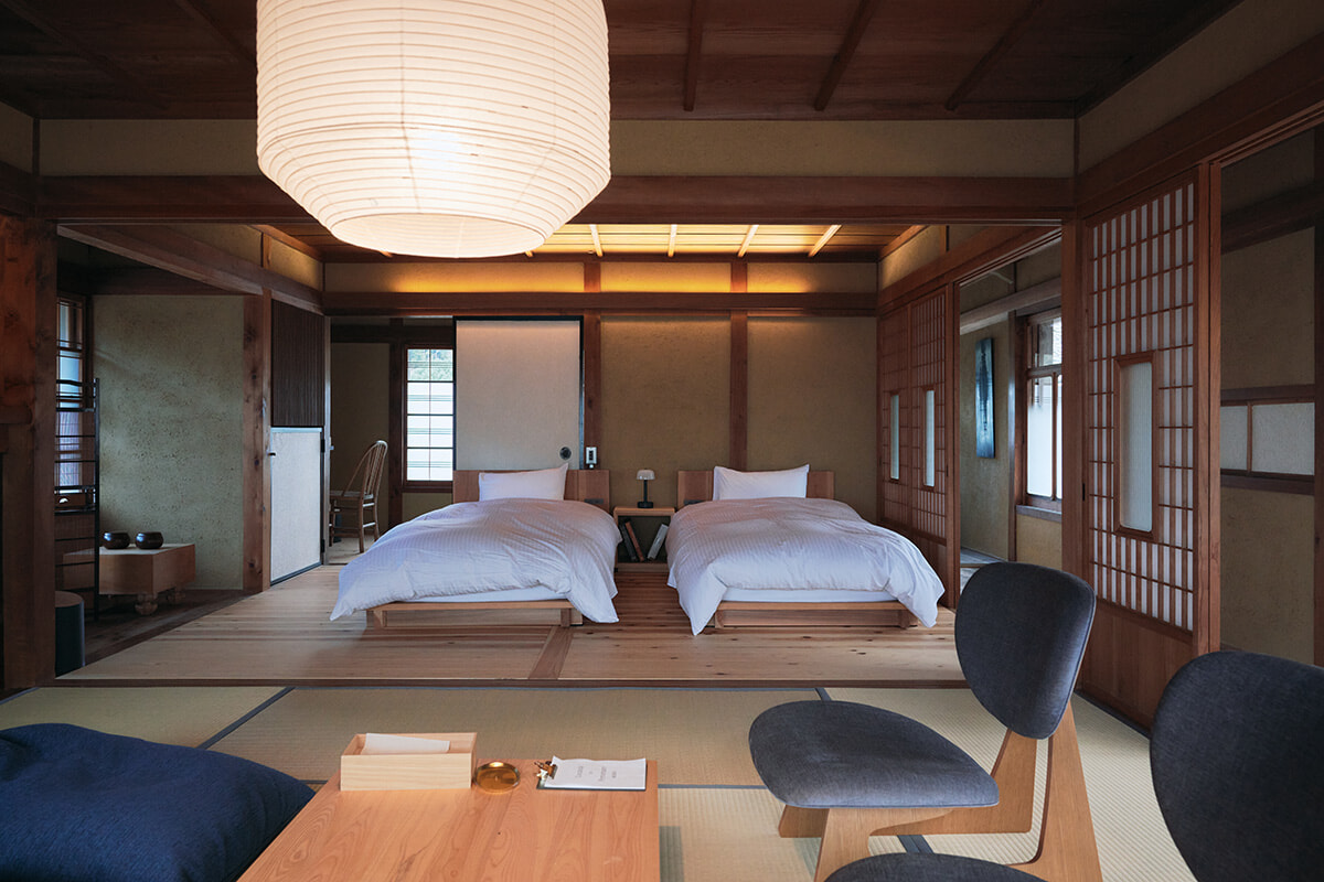 季節の機微が繊細に表現されたディナーを2時間ほど堪能。お腹が満たされた後はシェフと「おやすみなさい」と言葉を交わし、そのまま2階へ。手入れが行き届いた部屋で、五感が研ぎ澄まされる時間の続きを楽しむ。