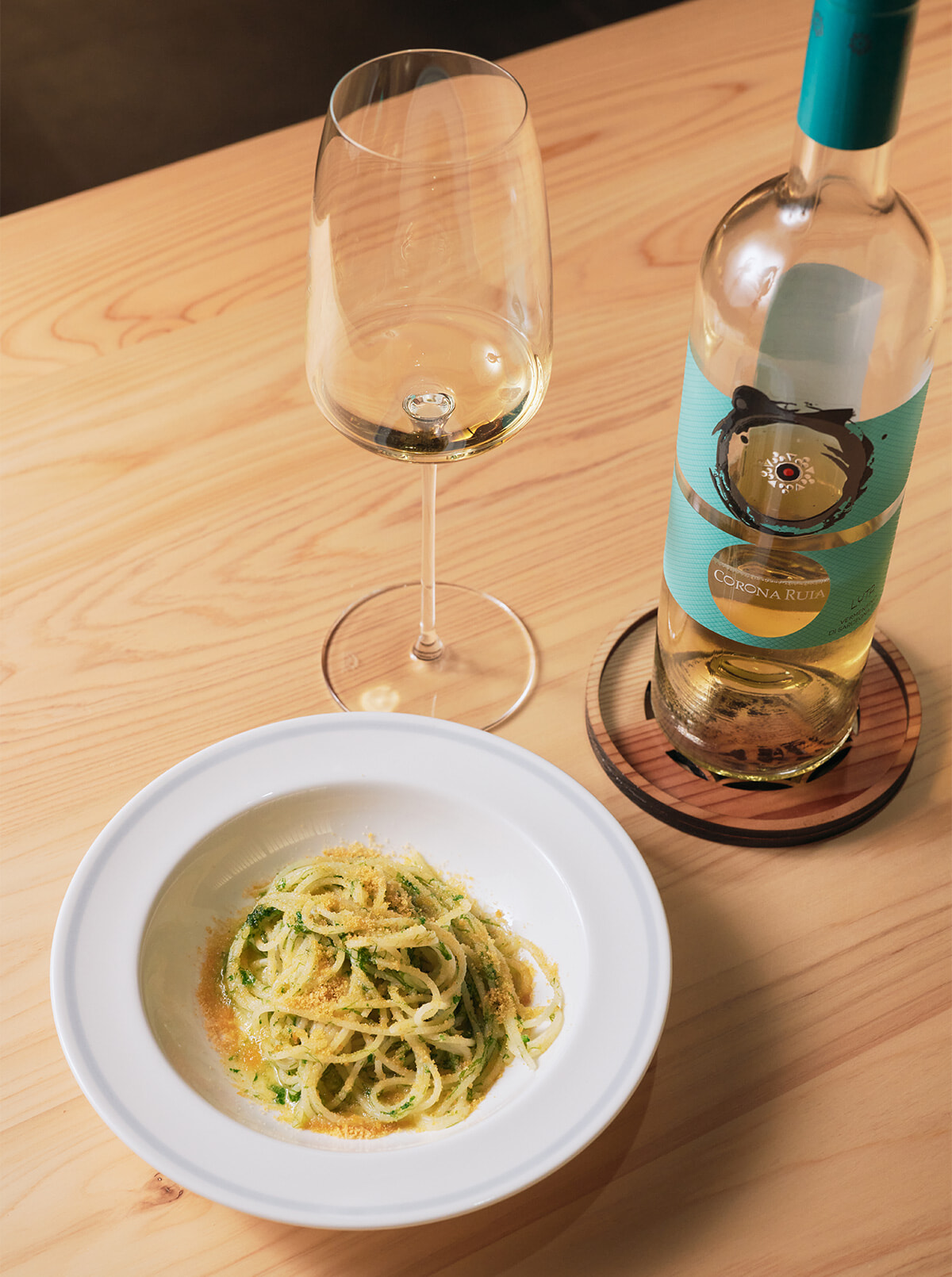自然あふれる町と土地の旨味が凝縮された食材が唯一無二の一品を生む。自家製のカラスミとアオサのペペロンチーノ。