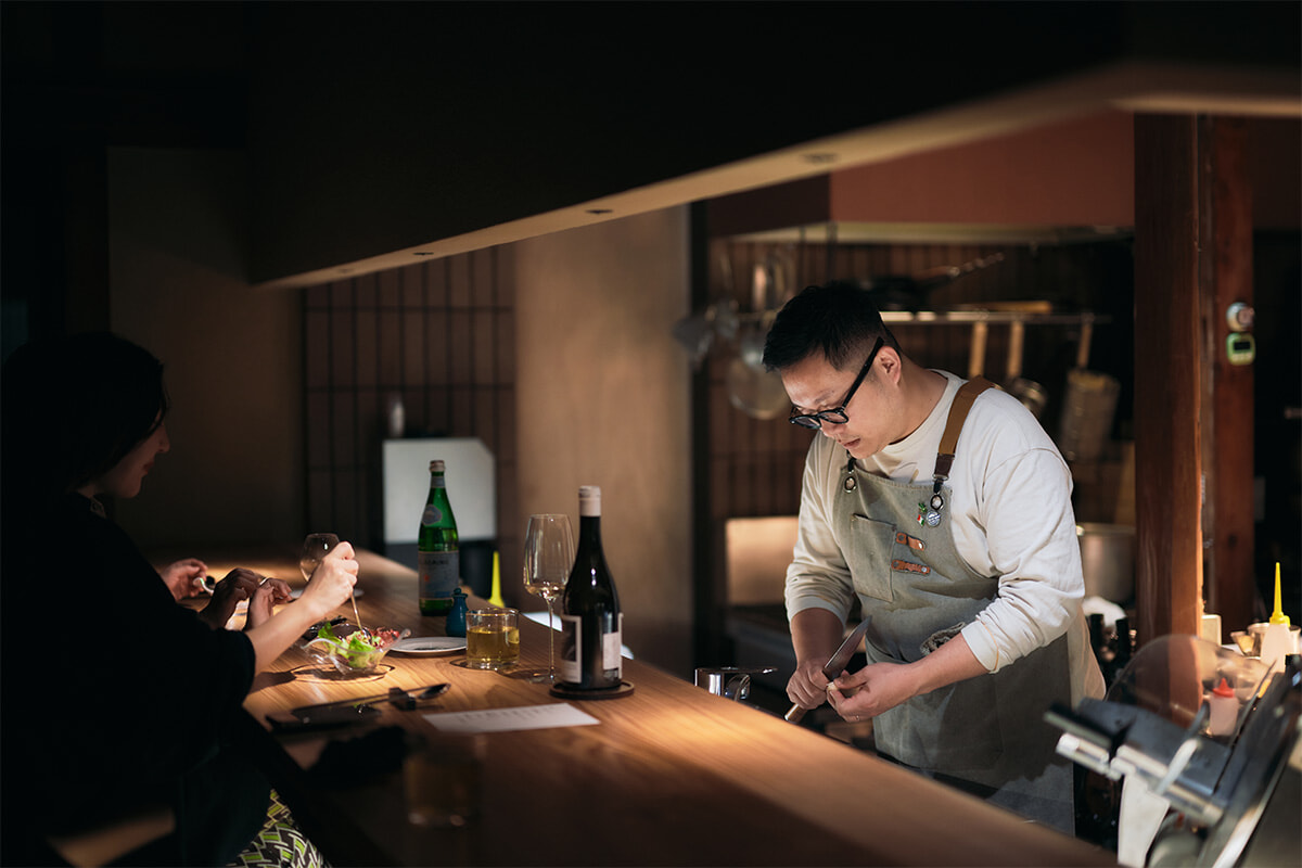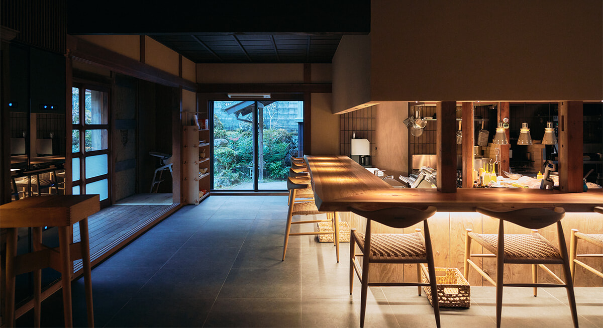 部屋の窓から見上げる夜空には満天の星が輝き、耳を澄ませば川のせせらぎが聴こえてくる。コンビニも華やかな観光施設もないけれど、心が歓ぶ豊かな美しさがある。そのことを教えてくれるのは、徳島県上勝町にある宿付きレストラン、ペルトナーレ。イタリアンの名店アル・ケッチァーノで経験を積んだ表原平シェフが2024年4月、地元の人の紹介で見つけた大正時代の家屋をリノベーションしてロカンダ(旅籠)をスタートさせた。